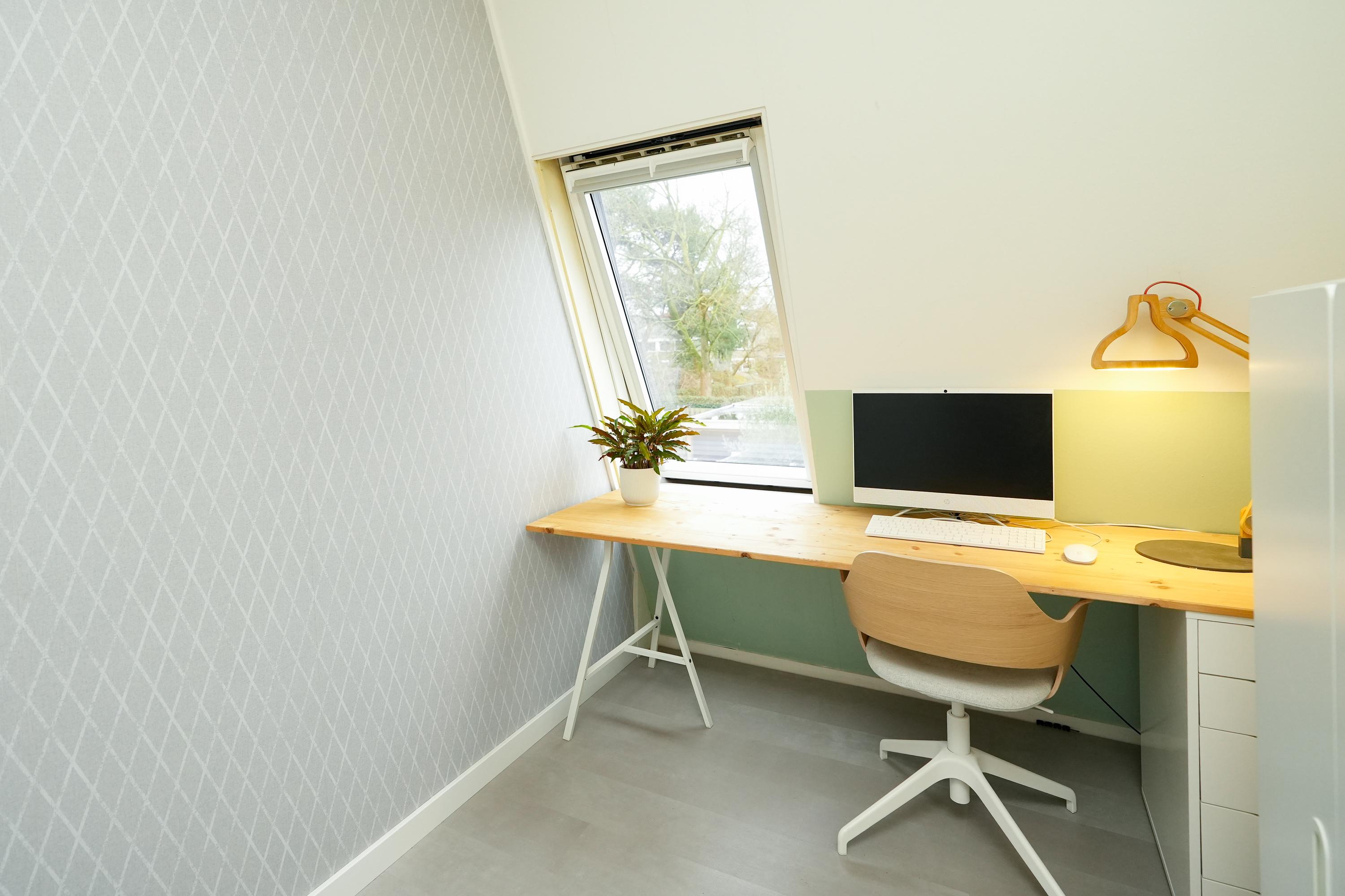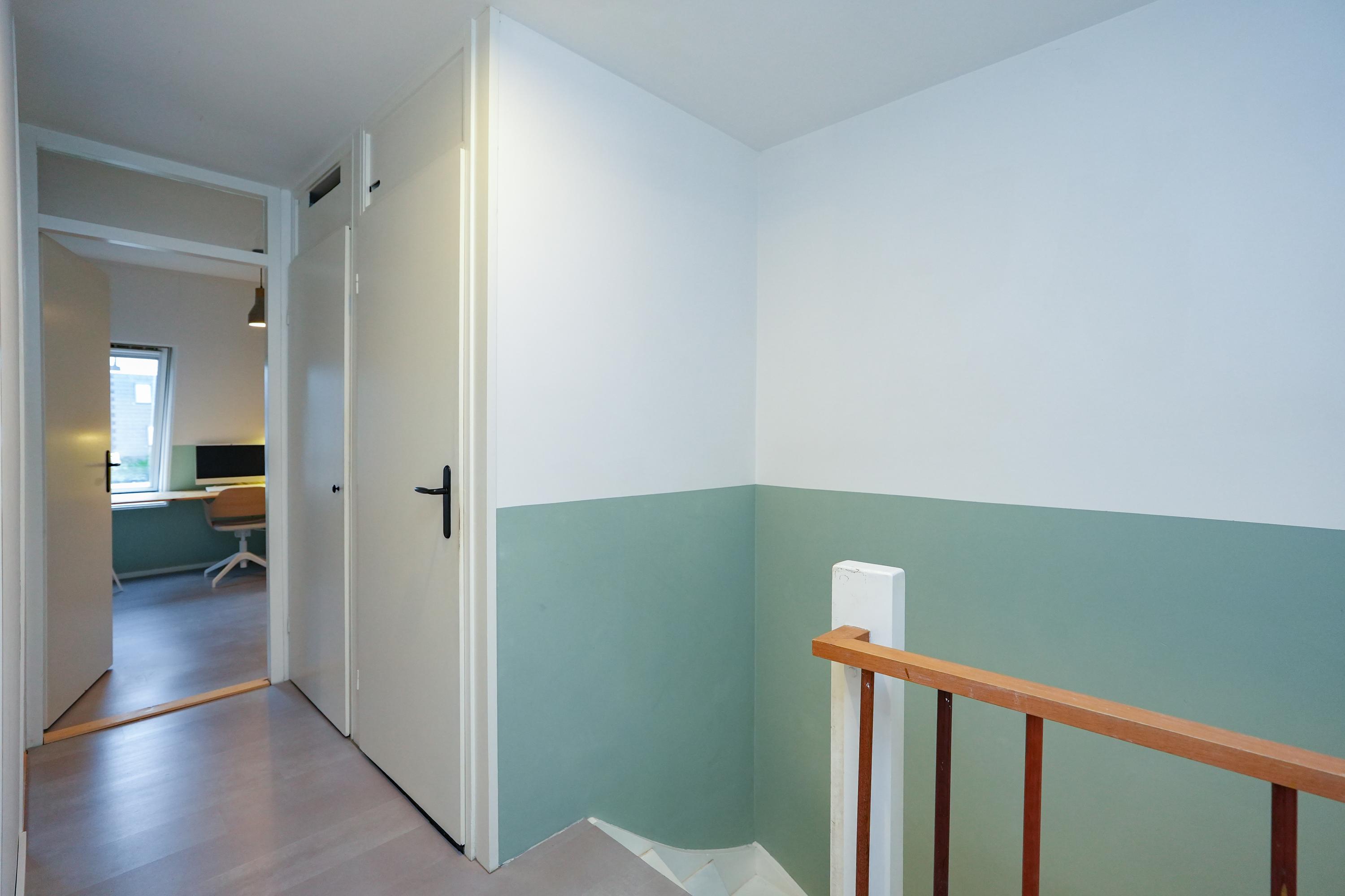 De bovenverdieping omvat een overloop met drie lichte kamers, waarvan twee royale slaapkamers, één met inloopkast. De moderne badkamer is voorzien van een ligbad, inloopdouche en dubbele wastafel. Bijzonder is ook het separate toilet op deze verdieping. Parkeren is mogelijk in de straat en nabij het goed uitgeruste buurtwinkelcentrum.