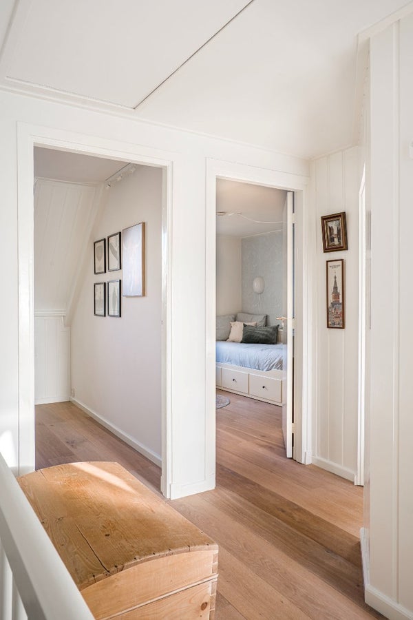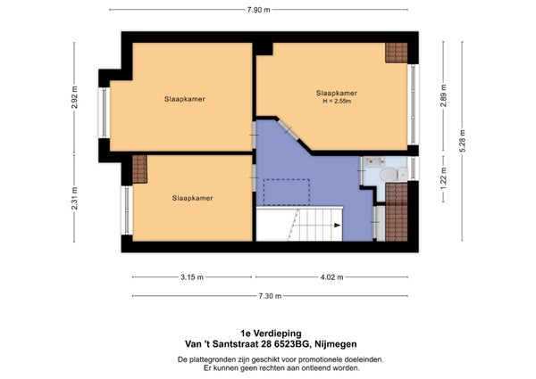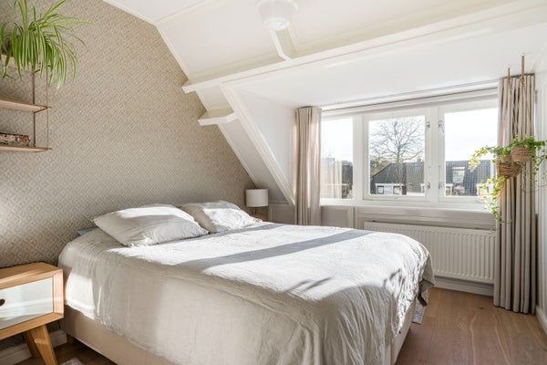 Eerste verdieping: overloop met entree zolder, slaapkamer aan de voorzijde met dakkapel, slaapkamer aan de voorzijde, slaapkamer aan de achterzijde met dakkapel, toilet met fontein, vaste kast met opstelplaats cv-combiketel.
