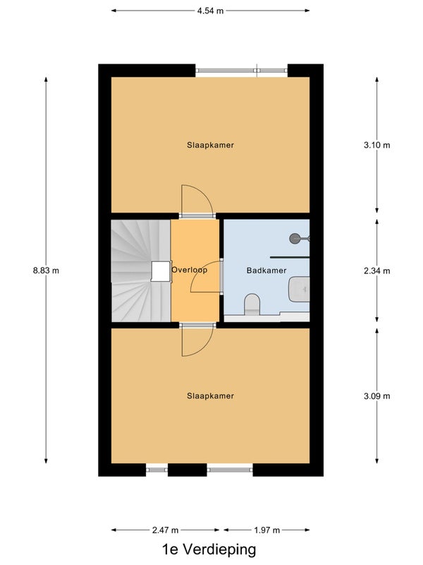 - De tussenwoning heeft een woonoppervlakte van 105 m² en beschikt over 4 kamers, waarvan 2 slaapkamers;