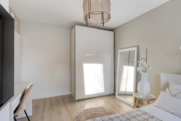 Op de eerste verdieping bevinden zich twee volwaardige slaapkamers, beide netjes afgewerkt en prettig van formaat. Deze kamers zijn ideaal als hoofdslaapkamer en kinder- of werkkamer en bieden voldoende ruimte voor kasten en een tweepersoonsbed. De rustige afwerking zorgt ervoor dat je hier direct een fijne, ontspannen sfeer ervaart.