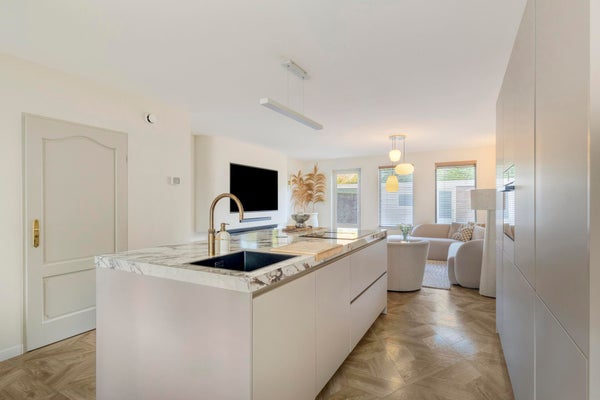 Bij binnenkomst valt direct de verzorgde afwerking en rustige kleurstelling op. De woning is recent volledig gestuct, wat zorgt voor een strakke en moderne uitstraling. De woonkamer is licht en ruim en vormt samen met de keuken een prettig geheel. De cinewall en open haard zorgen voor extra sfeer en comfort en zijn bij de koop inbegrepen. Dankzij de aanwezige airconditioning is het hier ook op warme dagen aangenaam wonen.