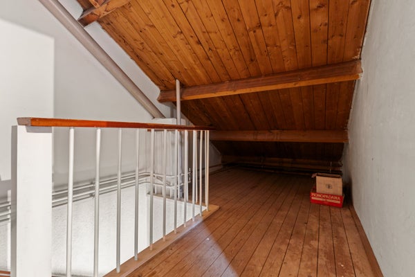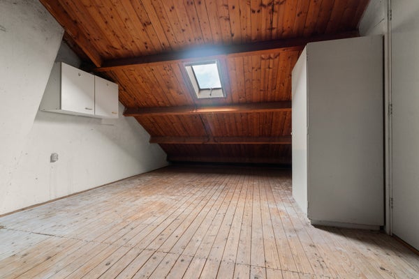 Een tweede vaste trap leidt naar de ruime zolderverdieping. De zolder heeft een voorzolder en als bonus als toekomstige extra (slaap)kamer na renovatie.