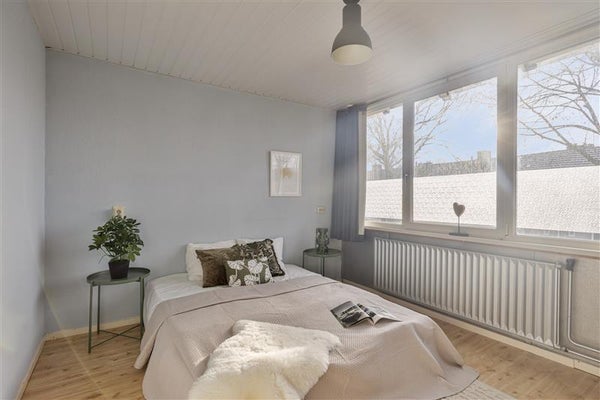 De woonkamer is lekker licht en geeft mogelijkheden voor diverse indelingen. Wordt het een grote familiebank of juist een kleinere zithoek met een gezellige leesplek? De gesloten keuken vraagt om jouw moderne visie, of je nu kiest voor strak en minimalistisch of juist een landelijke stijl. Vergeet niet: de ruimte biedt alles wat je nodig hebt om er een plek van te maken waar je gezellig samenkomt.