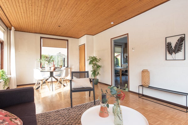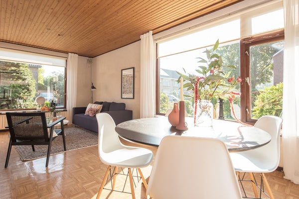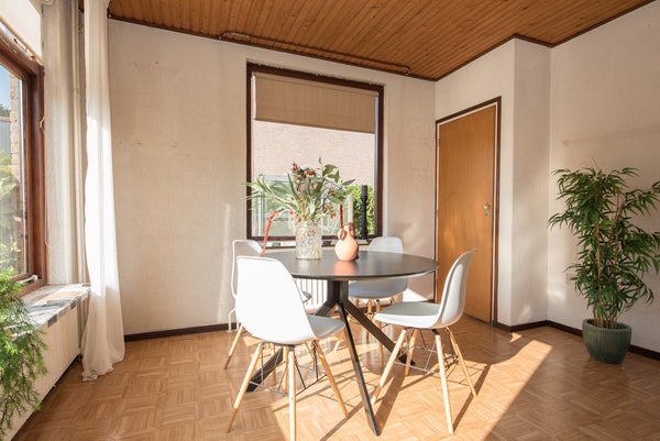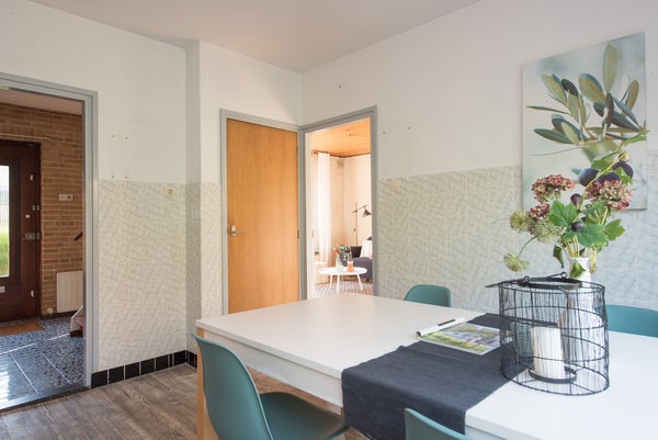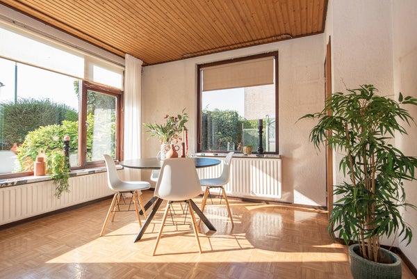 - De tussenwoning heeft een woonoppervlakte van 124 m² en beschikt over 8 kamers, waarvan 6 slaapkamers;
