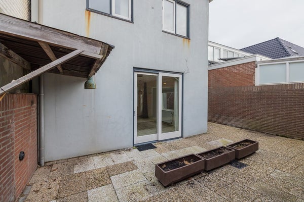 De buitenruimte aan de achterzijde wordt gedeeltelijk aan de woning toebedeeld;