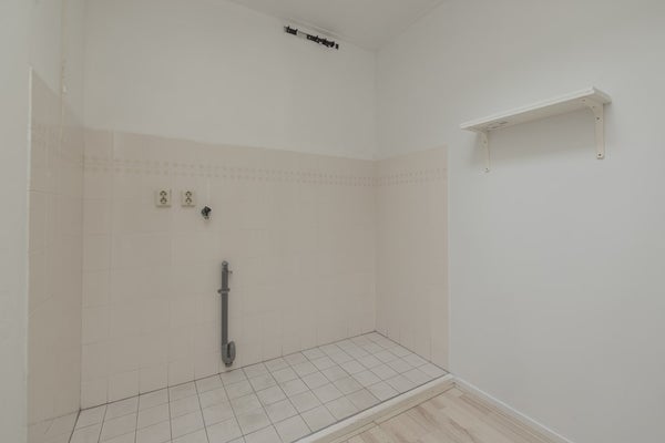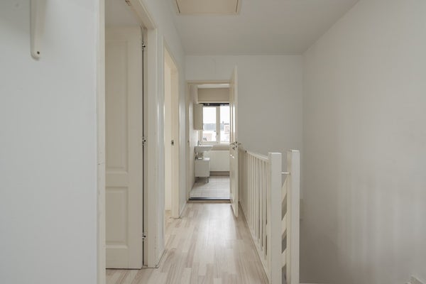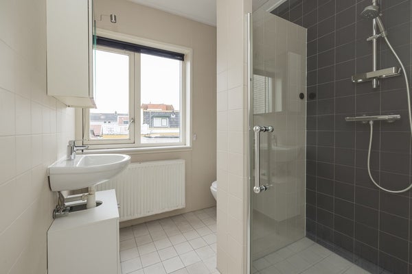 De overloop heeft een groot dakraam en de aansluitingen voor de wasapparatuur. Er zijn op deze verdieping twee ruime slaapkamers en een fraaie badkamer met een wandcloset, een inloopdouche en een wastafel. Via een vlizotrap op de overloop is de meer dan riante bergzolder bereikbaar met de opstelling van de CV-ketel (2025). Met een vaste trap kunt u de zolder bij de woning betrekken, dat levert bijzonder veel extra woonruimte op.