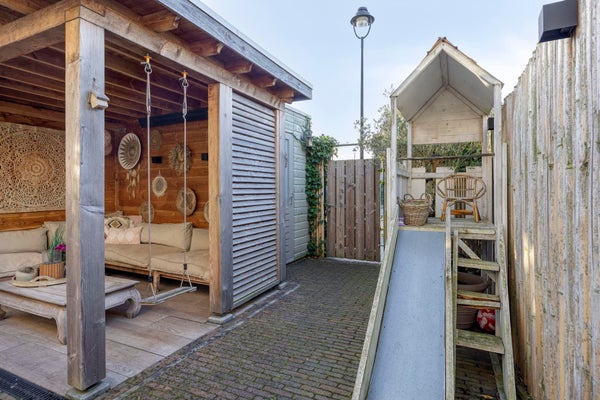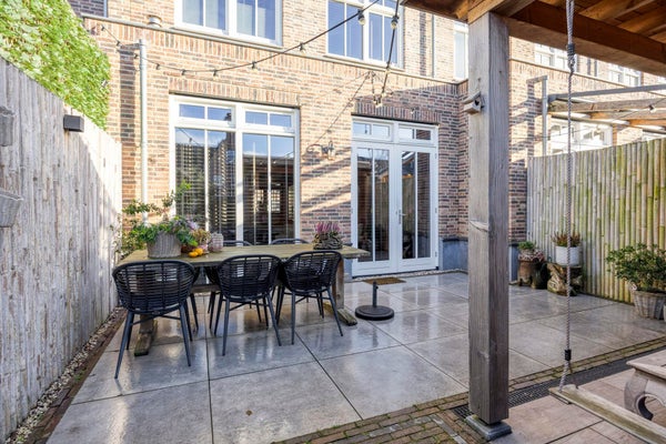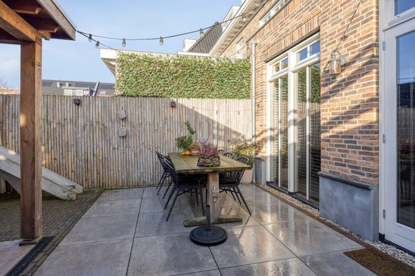 De zonnige achtertuin is onderhoudsarm aangelegd en biedt u volop zonuren. De bestrate tuin beschikt over meerdere mogelijkheden voor het creëren van een terras of het plaatsen van een buitentafel. Onder de overkapping is ruimte voor een comfortabele loungeset, waar u heerlijk kunt ontspannen. Daarnaast is er een berging aanwezig voor fietsen en tuinspullen en beschikt de tuin over een poort, wat zorgt voor extra gemak.