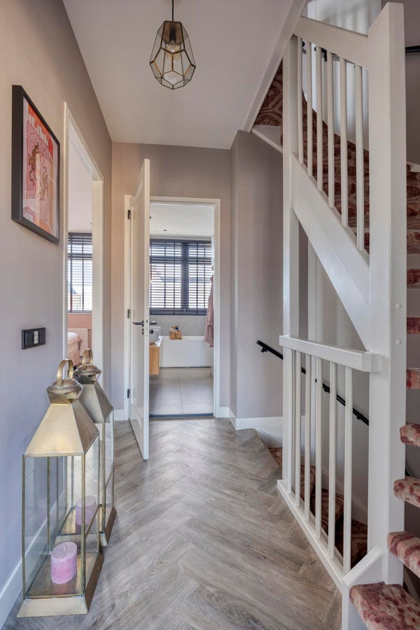 Via de vaste trap in de hal bereikt u de eerste verdieping. Hier geeft de overloop toegang tot drie slaapkamers en de badkamer. Ook op deze verdieping ervaart u een prettige lichtinval en een logische indeling, waardoor de ruimtes optimaal tot hun recht komen.