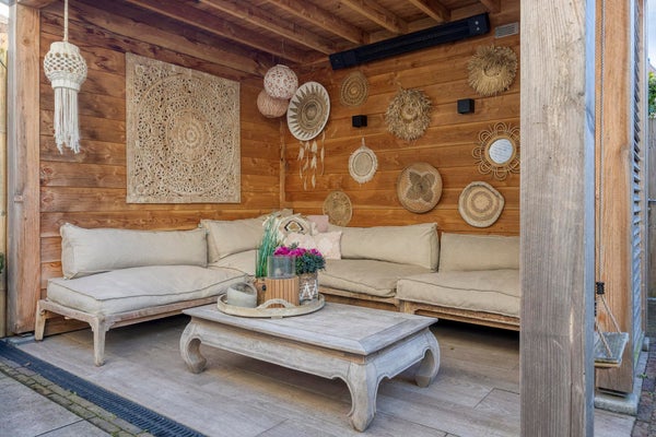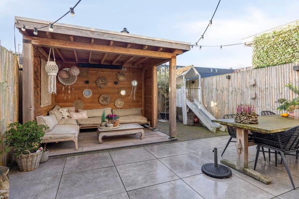 • Zonnige, onderhoudsarme tuin met overkapping en berging