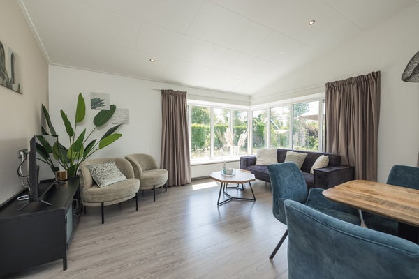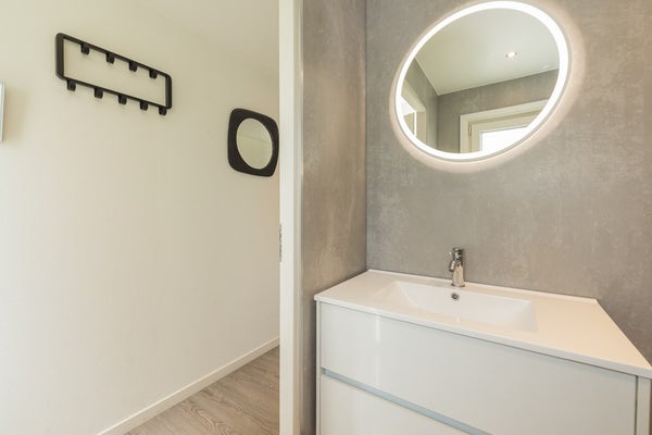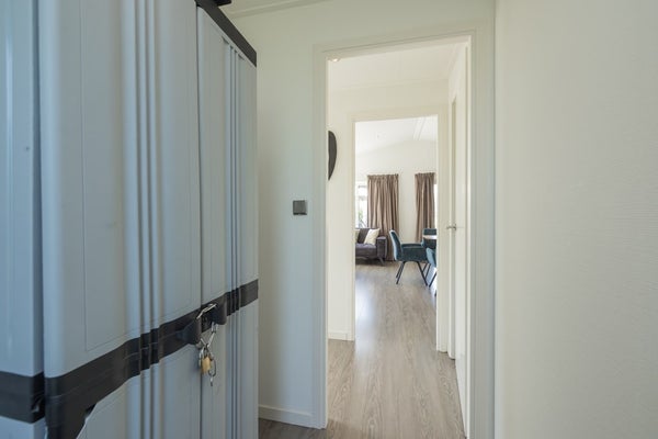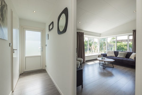 De bungalow is voorzien van een laminaatvloer en ingebouwde verlichting;
