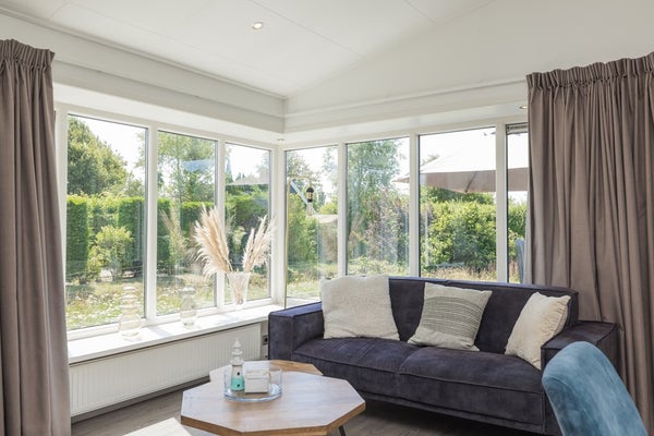 De bungalow is volledig voorzien van kunststof kozijnen;