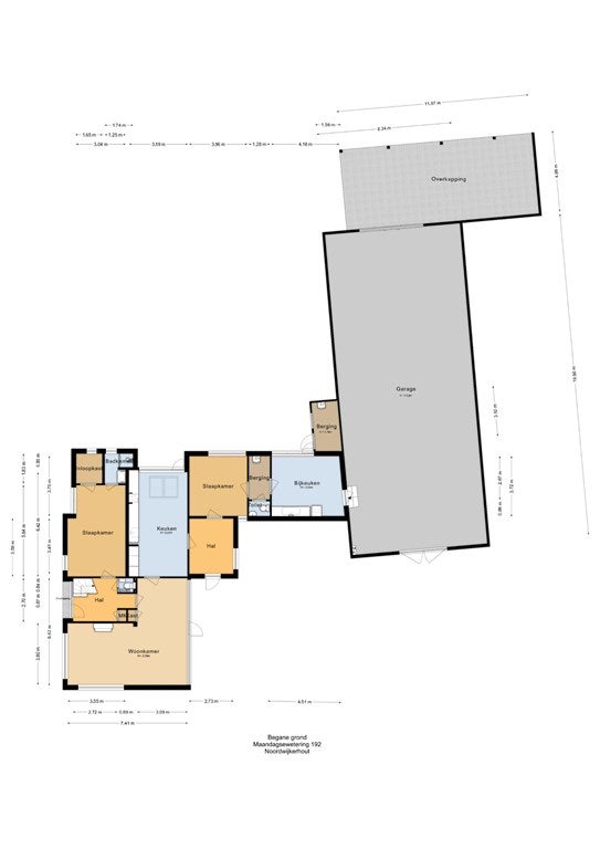 - Aanwezig (960 m², gelegen op het zuidwesten)
