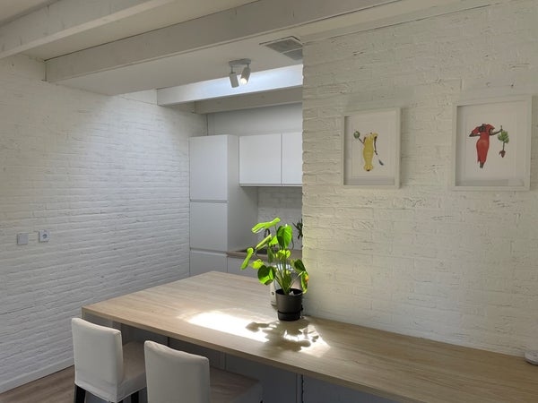 • Een lichte open keuken met diverse inbouwapparatuur;