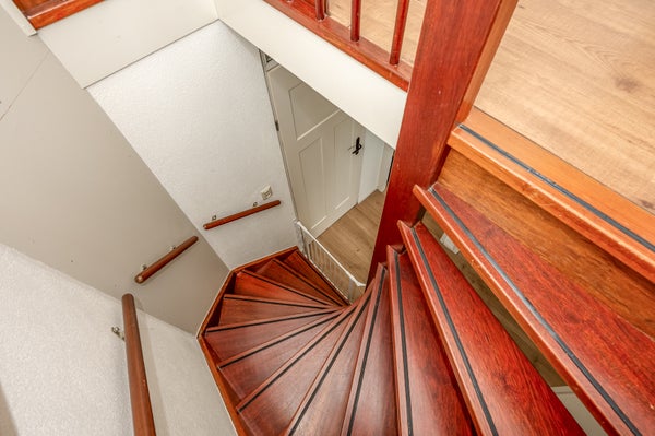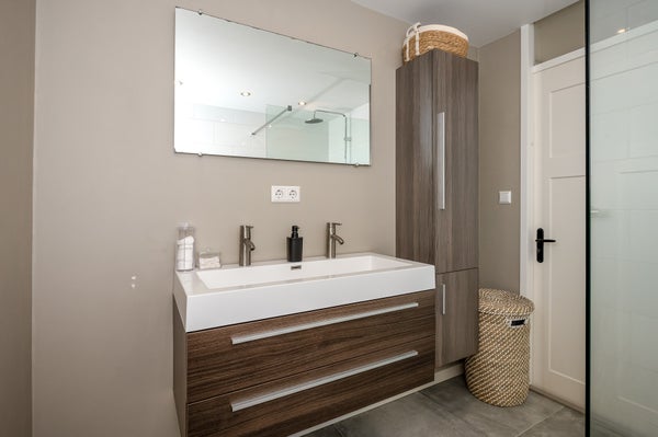 Op de 1e verdieping vindt u een grote slaapkamer en een badkamer met vloerverwarming en inloopdouche. De master bedroom biedt toegang tot een balkon. De 2e verdieping heeft een grote zolderkamer met veel bergruimte.