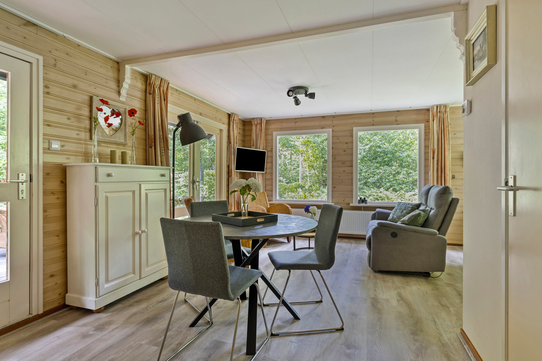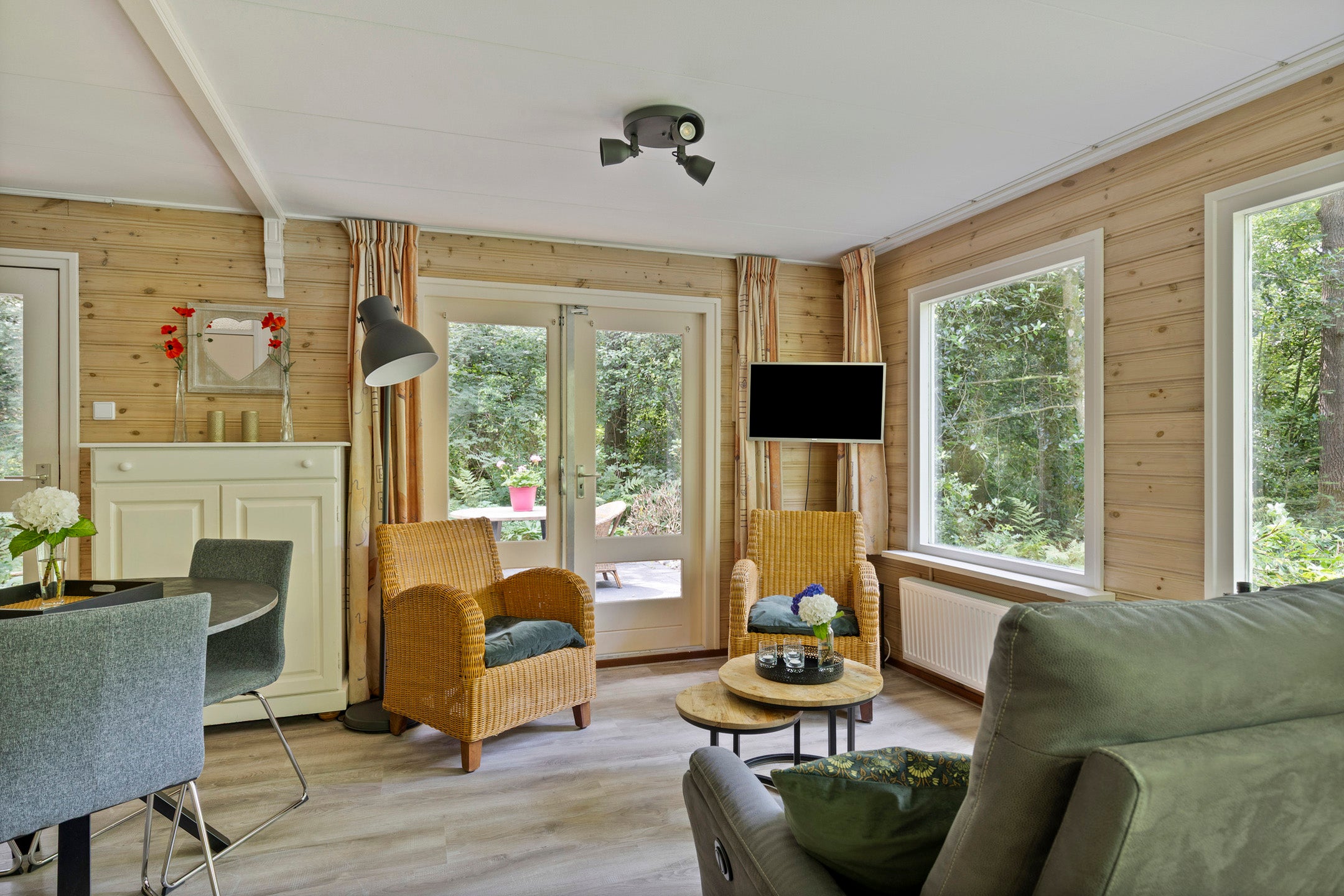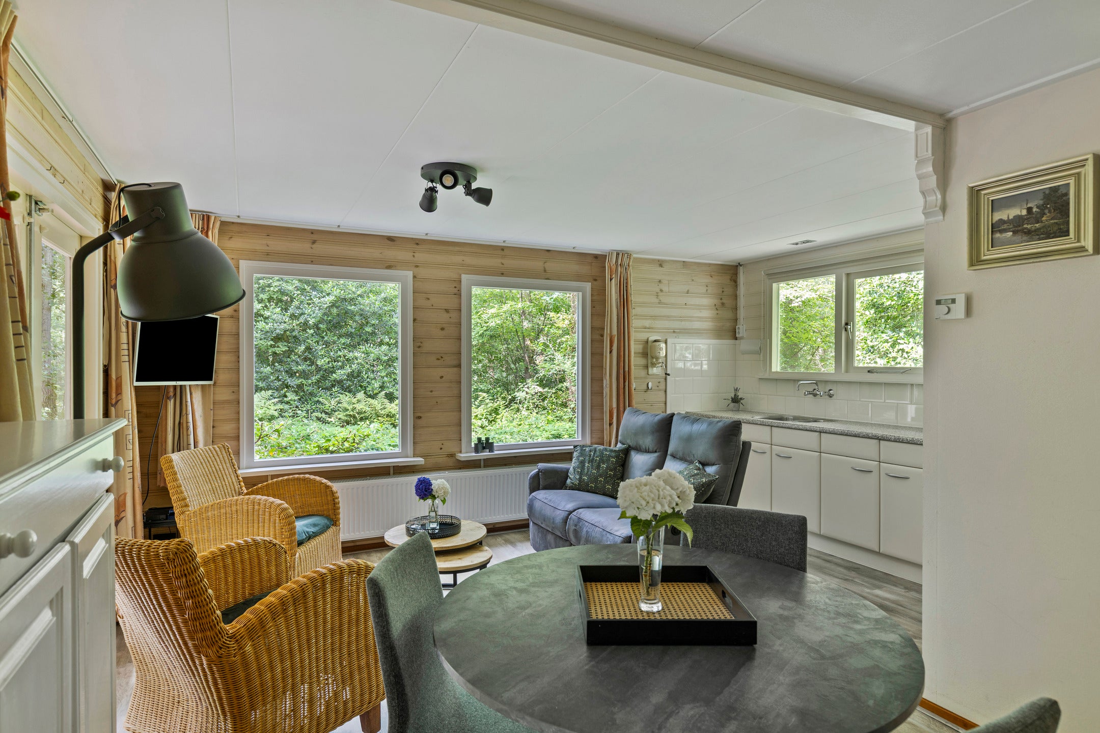 Deze sfeervolle recreatiewoning, gelegen in de bossen van Langeloerduinen in Norg, biedt een unieke kans om te genieten van de natuur. Met een woonoppervlakte van circa 43 m2 en een inhoud van 186 m3 biedt de woning alle comfort. De woonkamer met open keuken is praktisch ingericht en leidt via openslaande deuren naar een overdekte veranda en een fraai aangelegde tuin, perfect voor buitenleven.