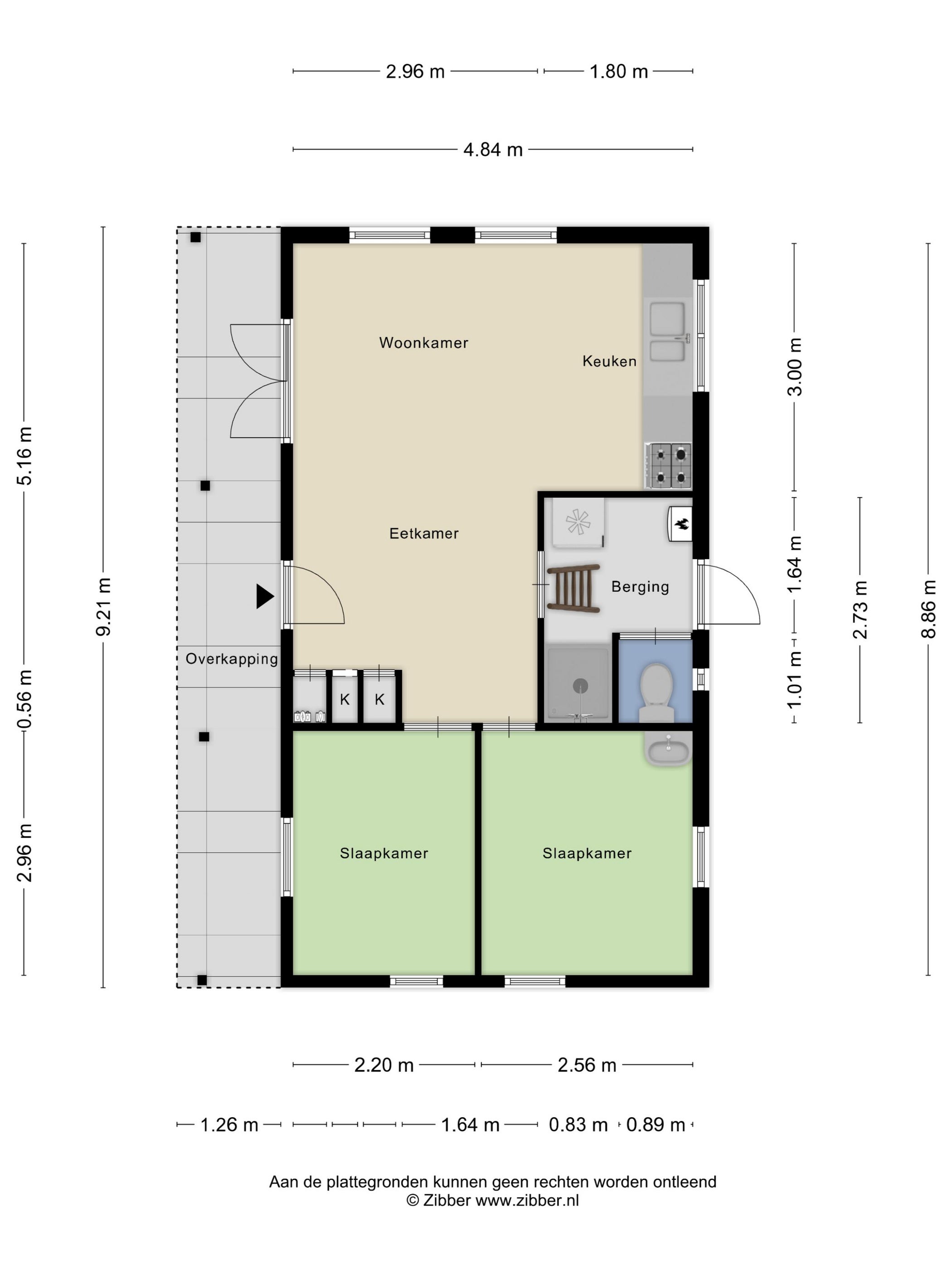 - De tussenwoning heeft een woonoppervlakte van 43 m² en beschikt over 3 kamers, waarvan 2 slaapkamers;
