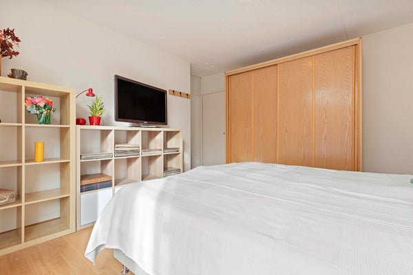 Ook het slaapgedeelte voelt licht en vrolijk aan. De slaapkamer aan de achterzijde heeft directe toegang tot de tuinkamer, waardoor u ’s ochtends heerlijk rustig wakker wordt. De open extra kamer kunt u invullen zoals u wilt: als logeerkamer, kastenkamer, werkplek of hobbyruimte.