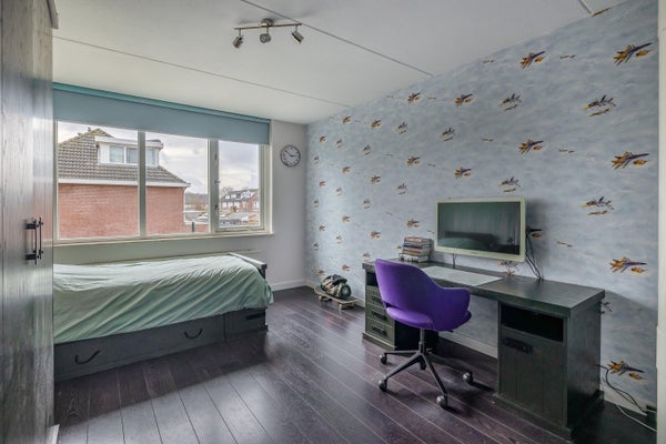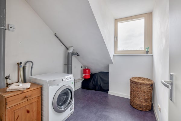 Op deze verdieping bevinden zich nog eens 2 volwaardige lichte slaapkamers; ook ideaal te gebruiken als kantoor-, werk- of hobbyruimte. Via moderne schuifdeuren zijn de twee kamers van elkaar gescheiden waardoor ze ook eenvoudig bij elkaar te betrekken zijn en kunnen fungeren als één grote ruimte. Daarnaast is er een aparte was- en technische ruimte, praktisch ingericht en uitgerust met een wastafel, bergruimte, cv ketel (2006) en aansluiting voor de was apparatuur. Een separate, extra bergkamer is hier ook voorhanden met een bergvliering die via een losse steektrap bereikbaar is. Aan bergruimte dus geen gebrek!