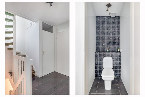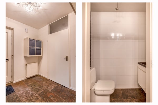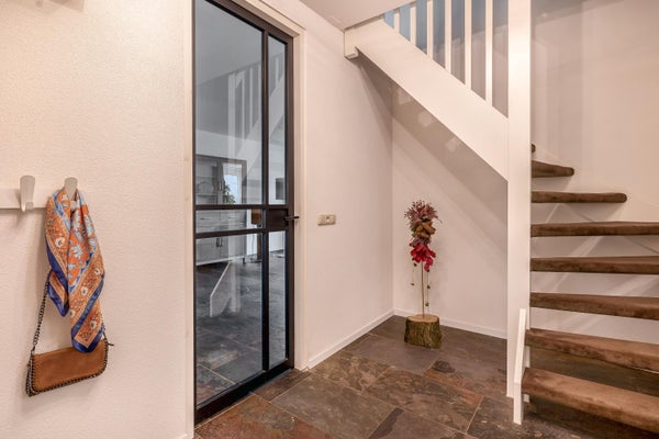 Via de ruime oprit met parkeergelegenheid voor wel 2 auto’s bereik je de entree van de woning. De verzorgde hal is licht en biedt toegang tot het toilet, de trapopgang naar boven en de woonkamer.
