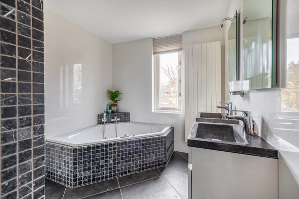 De ruime badkamer is compleet uitgevoerd en voorzien van een comfortabel hoekligbad met jetstream en whirlpoolfunctie, een aparte douche(cabine), een dubbel wastafelmeubel en een prettige daglichttoetreding. Daarnaast is er op deze verdieping een separaat toilet aanwezig.