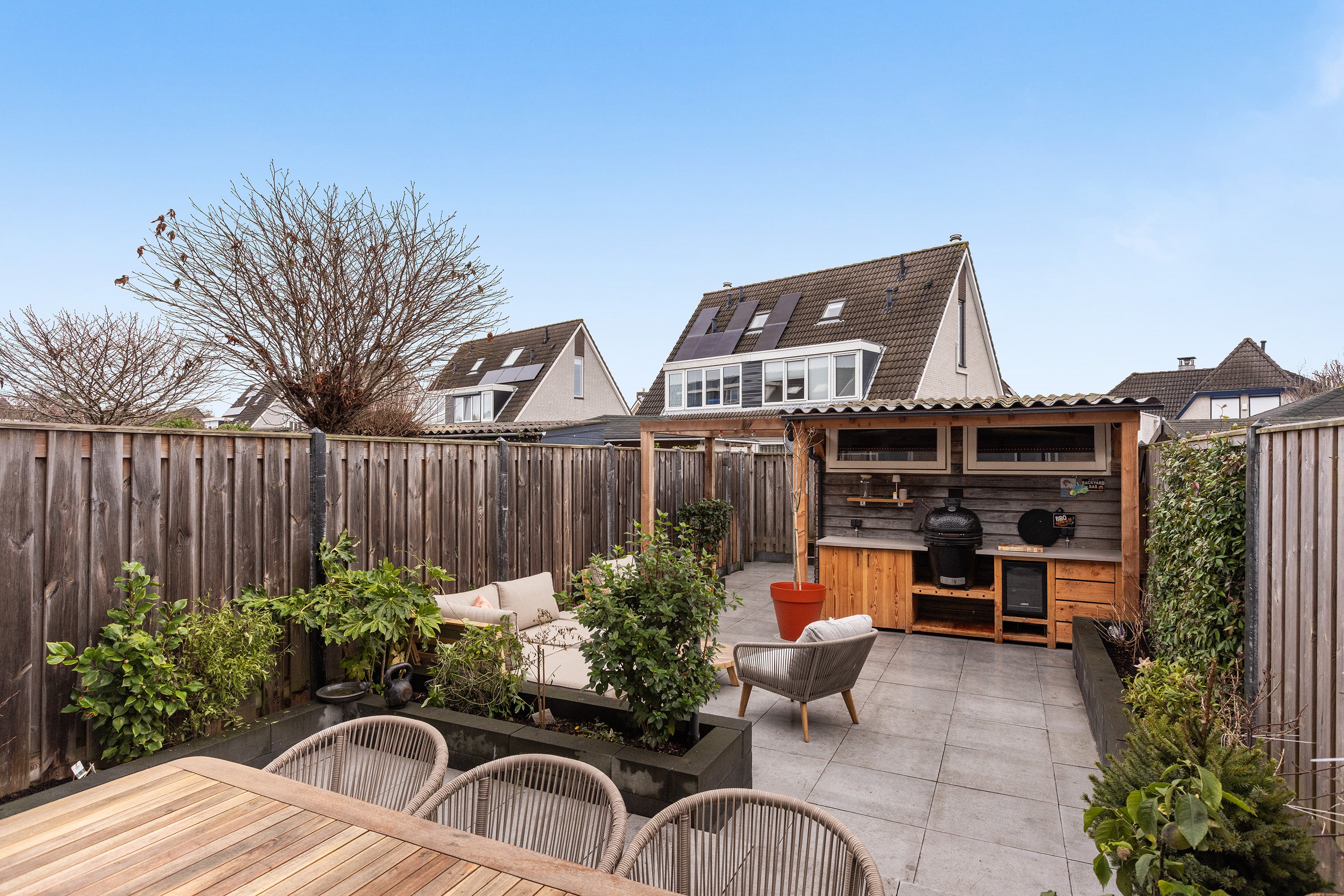 Deze sfeervolle tussenwoning aan de Roodborst 25 te Numansdorp werd in 1991 gebouwd en biedt een instapklare woning met een woonoppervlak van circa 98 m², 5 kamers en 4 slaapkamers. De begane grond beschikt over een tuingerichte woonkamer met voldoende lichtinval, een moderne keuken uit 2022 en is helemaal uitgerust met vloerverwarming en airconditioning. Op de eerste verdieping vindt u een keurige badkamer en drie slaapkamers, allemaal voorzien van rolluiken. De tweede verdieping herbergt een vierde slaapkamer met dakkapel en een voorzolder met aansluitingen voor wasapparatuur. De achtertuin, recent gerenoveerd, biedt een gezellige overkapping met buitenkeuken, ideaal voor buiten leven. Gelegen in een rustige, kindvriendelijke wijk nabij voorzieningen en groen.