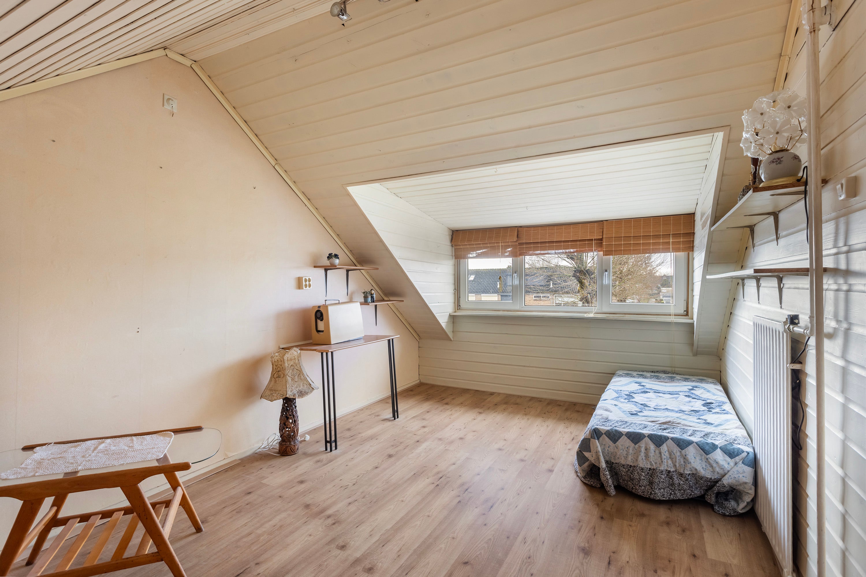 Deze ruime eengezinswoning, gebouwd in 1968, is gelegen aan een rustige straat met een zonnige tuin op het zuiden. De woning bevindt zich in een nette, maar gedateerde staat, perfect voor iemand die deze naar eigen wens wil aanpassen. Op een perceel van 154 m² biedt de woning een woonoppervlakte van 125 m², met vier ruime slaapkamers en een praktische berging. De begane grond bestaat uit een lichte woonkamer met open keuken, die is voorzien van apparatuur en toegang biedt tot de tuin. De verdieping heeft drie slaapkamers en een eenvoudige badkamer. De zolder, bereikbaar via een vaste trap, herbergt een vierde slaapkamer. De tuin is prachtig aangelegd, en de woning heeft 8 zonnepanelen. Gelegen nabij voorzieningen zoals scholen en openbaar vervoer, is dit een ideale plek om te wonen.