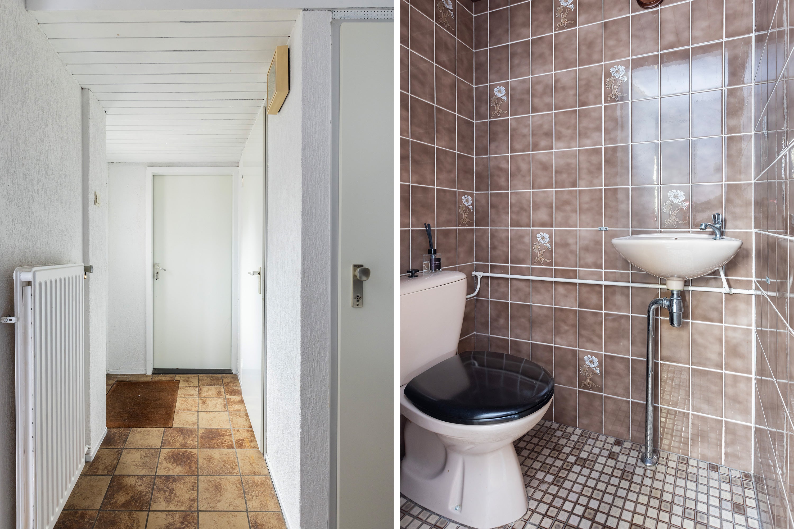 De begane grond heeft een hal met toegang tot de woonkamer, keuken en een berging met aansluitingen voor wasapparatuur. De open keuken is voorzien van een 4-pits gasfornuis en koelkast. Op de verdieping zijn drie slaapkamers, een eenvoudig te moderniseren badkamer en een praktische zolder. De achtertuin is ingericht met een terras en kunstgazon. Alle voorzieningen en de A29 zijn in de nabijheid, wat het een aantrekkelijke locatie maakt.