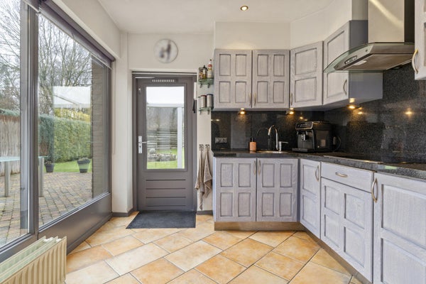 In de aanbouw is de keuken gesitueerd, de keuken in hoekopstelling is praktisch ingericht en voorzien van diverse inbouwapparatuur, waaronder een vaatwasser, koelkast, afzuigkap, combi-oven en keramische kookplaat. Vanuit de keuken is er directe toegang tot de tuin en de overkapping – ideaal voor zomerse dagen.