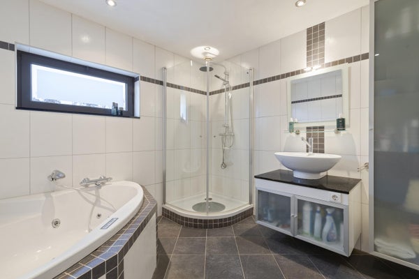 De luxe badkamer (2005) is een echte eyecatcher en compleet uitgerust met een hoekbad met whirlpoolfunctie, een douchecabine, wastafel met meubel en toilet. Comfort en ontspanning staan hier centraal.