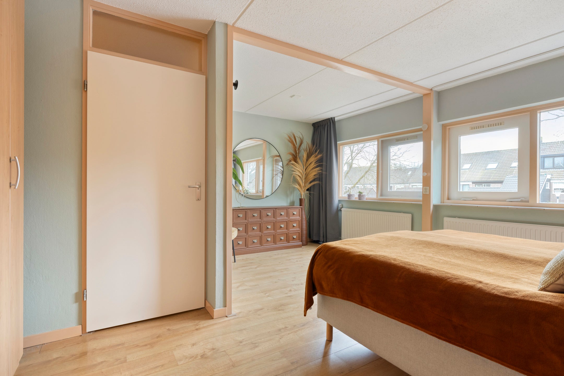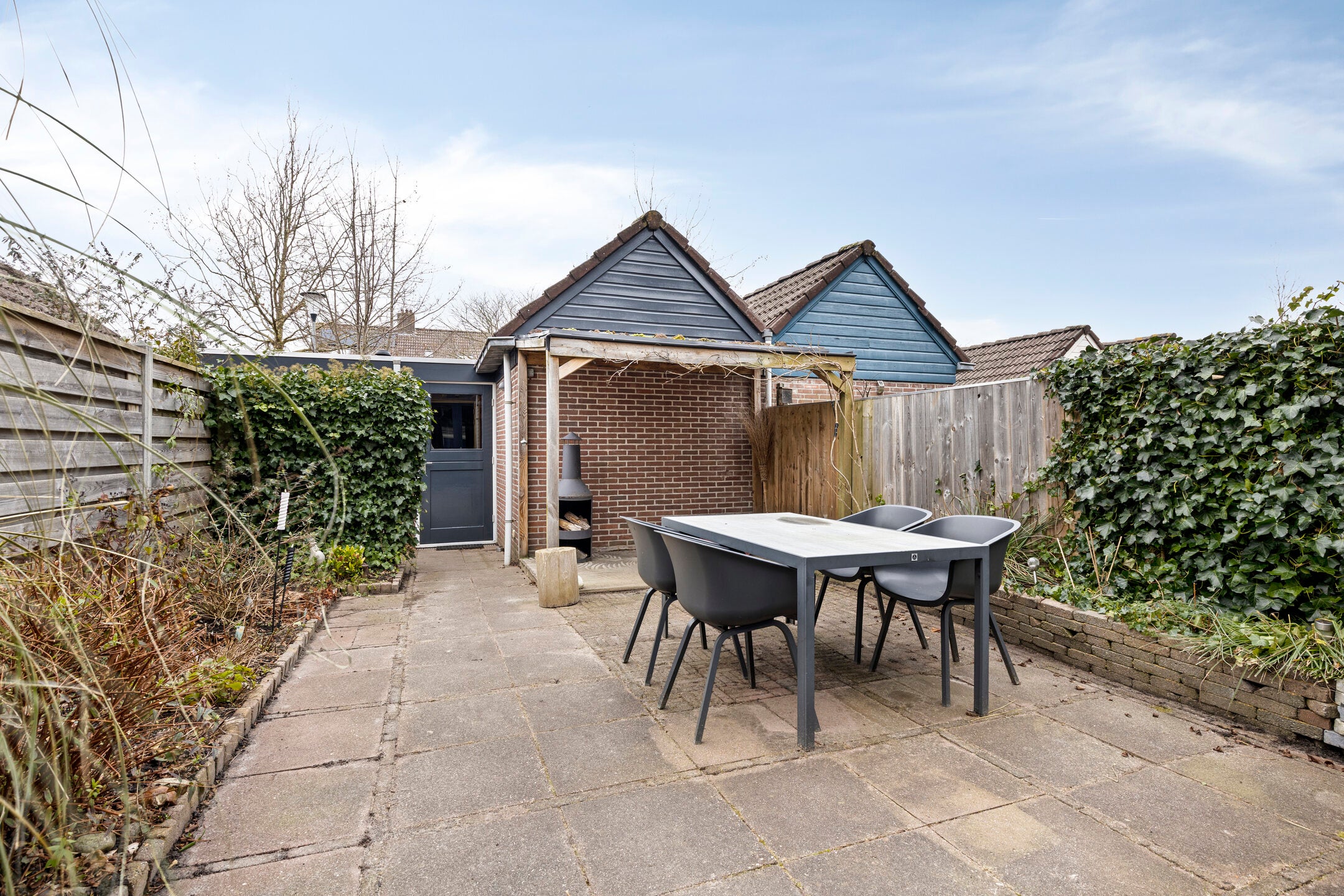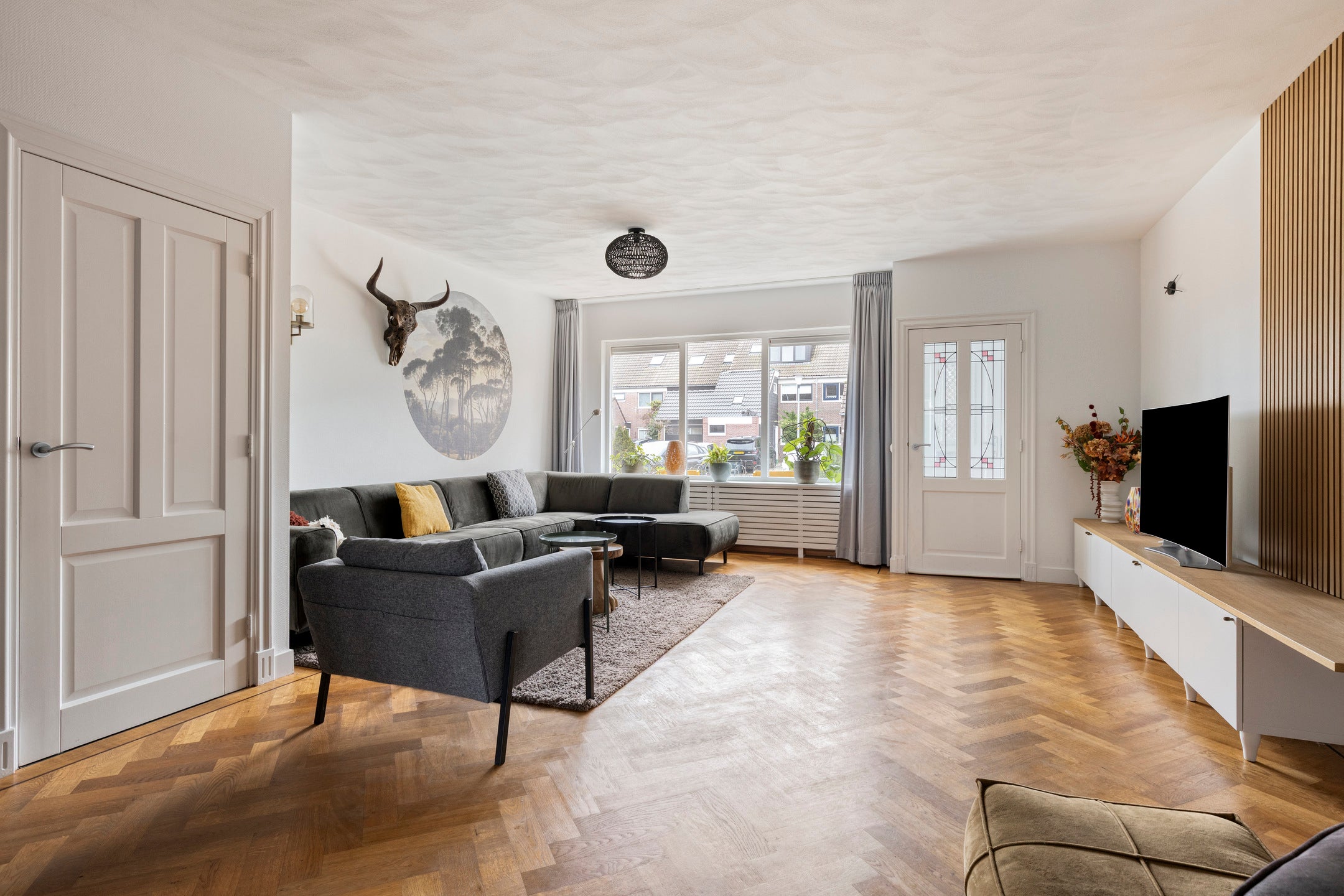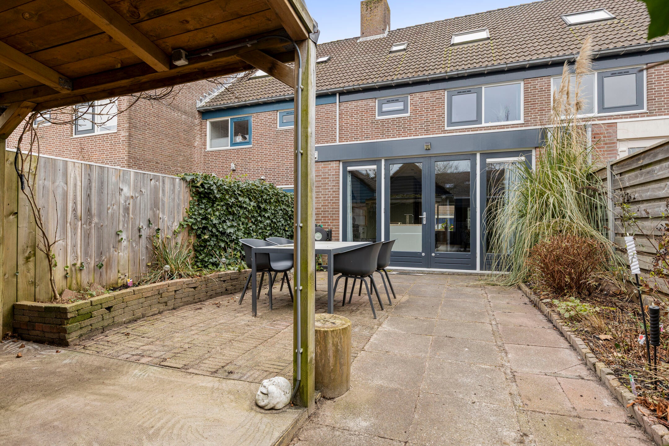 Deze perfect onderhouden, royale eengezinswoning bevindt zich in een kindvriendelijke woonwijk. Met een lengte van 12 meter en een energiezuinige opzet, waaronder 14 zonnepanelen en extra vloerisolatie, biedt deze tussenwoning veel comfort. De woonkamer, met visgraat parketvloer, en luxe woonkeuken zijn met kamer en suite deuren van elkaar gescheiden. De keuken heeft moderne apparatuur en openslaande deuren naar de achtertuin, waar je heerlijk kunt genieten van de zon. De eerste verdieping bevat twee ruime slaapkamers en een badkamer met ligbad en inloopdouche. De grote garage, met elektrische deur en bergzolder, en de extra berging maken het geheel compleet. Met een woonoppervlakte van 134 m² en een perceel van 172 m² biedt deze woning veel ruimte voor een gezin.