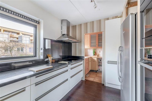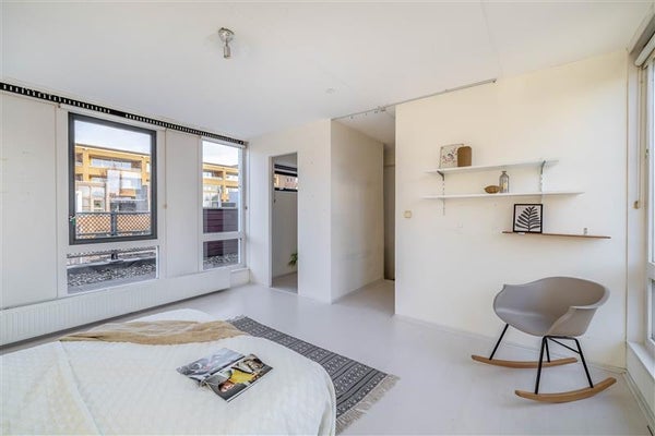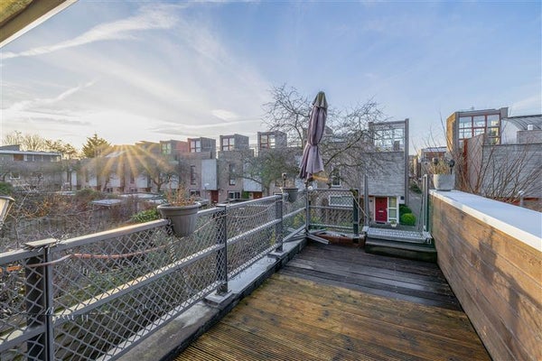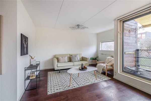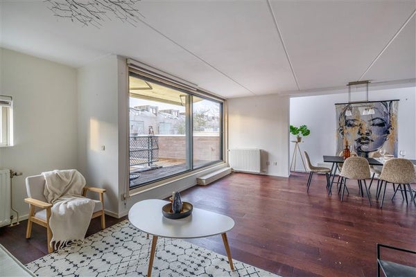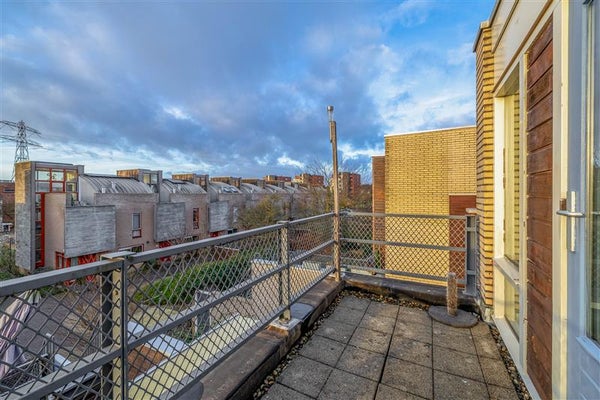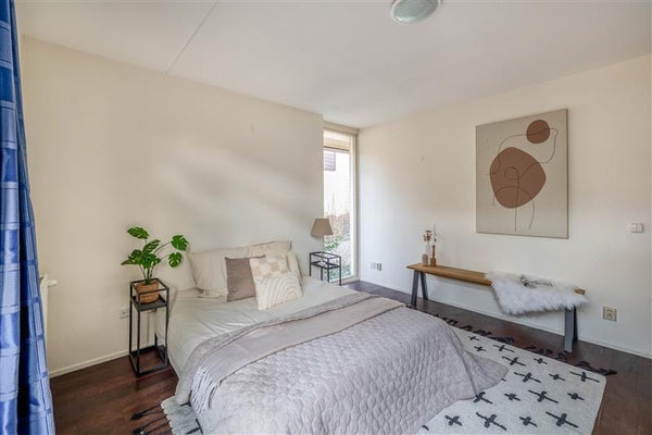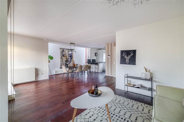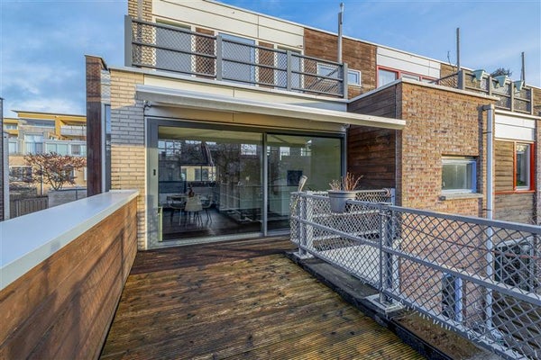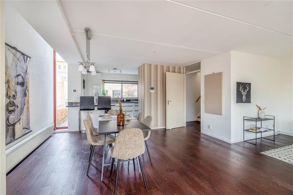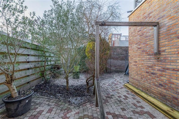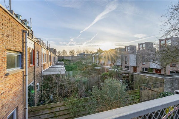 Op de eerste verdieping ontdek je het hart van de woning: een lichte en ruime woonkamer met een grote schuifpui naar het balkon. Stel je voor: na een drukke werkdag schuif je de deur open en geniet je met een glas wijn van de laatste zonnestralen op je balkon. Nog een pluspunt: via een trap sta je zó in de zonnige achtertuin met achterom. Hier kun je heerlijk loungen, tuinieren of barbecueën met vrienden en familie.