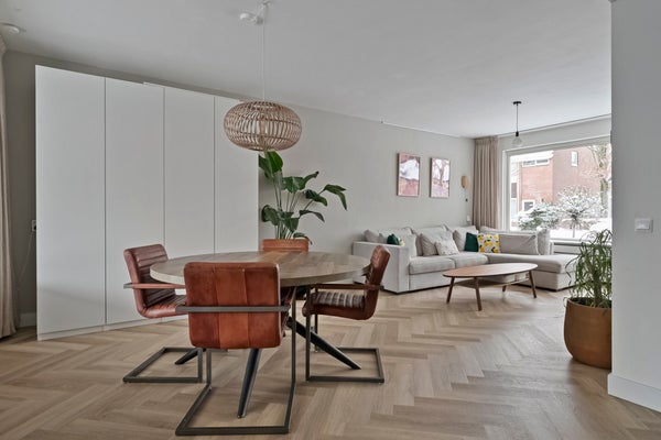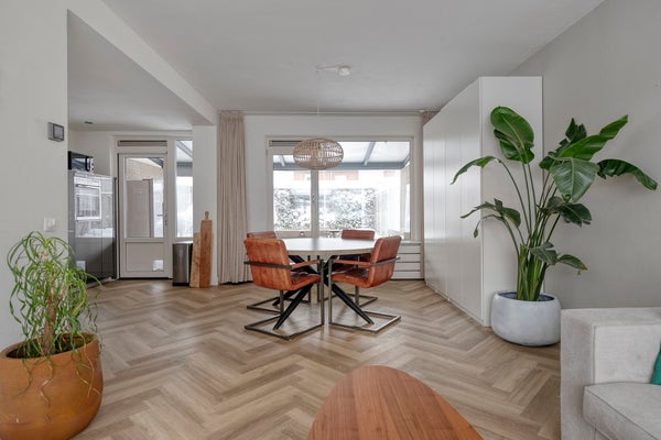 Deze nette tussenwoning uit 1968 met vier slaapkamers en een zonnige achtertuin is perfect voor jonge gezinnen. Gelegen aan een rustige woonstraat met speelruimte voor de deur, biedt de woning privacy en gemak, met winkels en een basisschool op loopafstand. De lichte L-vormige woonkamer en moderne open keuken zijn sfeervol ingericht en zorgen voor een eigentijdse uitstraling. Op de eerste verdieping vindt u drie slaapkamers en een moderne badkamer. De tweede verdieping heeft een extra ruime slaapkamer en een overloop met bergruimte. De verzorgde, westgeoriënteerde achtertuin met terrasoverkapping nodigt uit tot buitenverblijven. Het huis beschikt verder over goede parkeerfaciliteiten en een centrale locatie nabij natuurgebieden.
