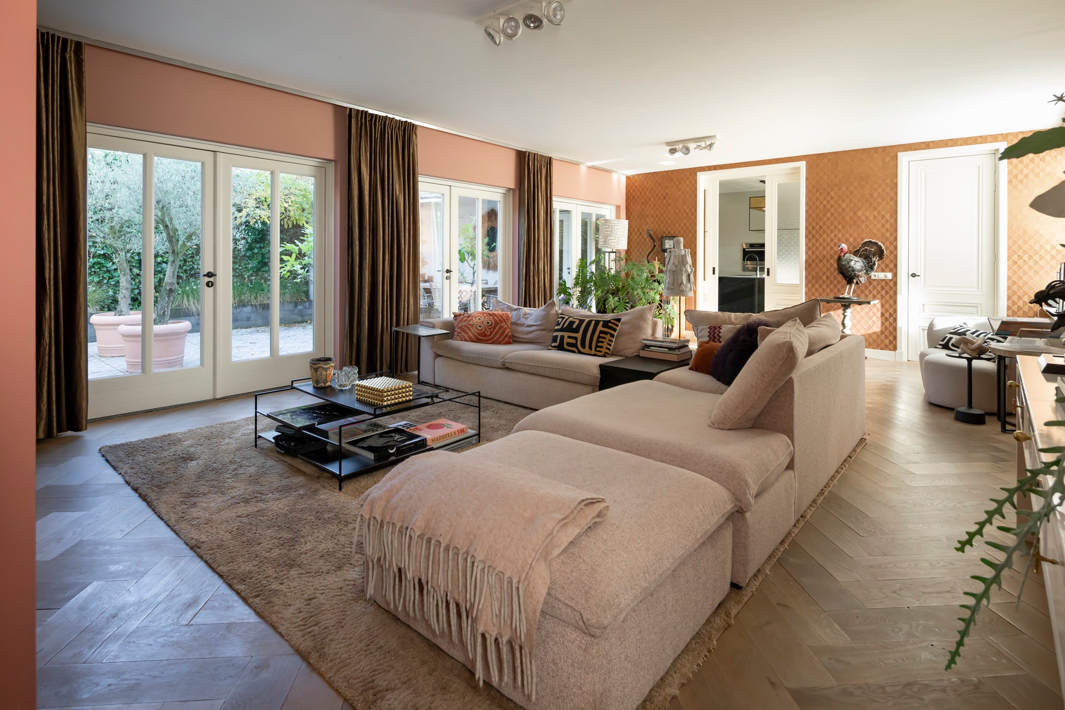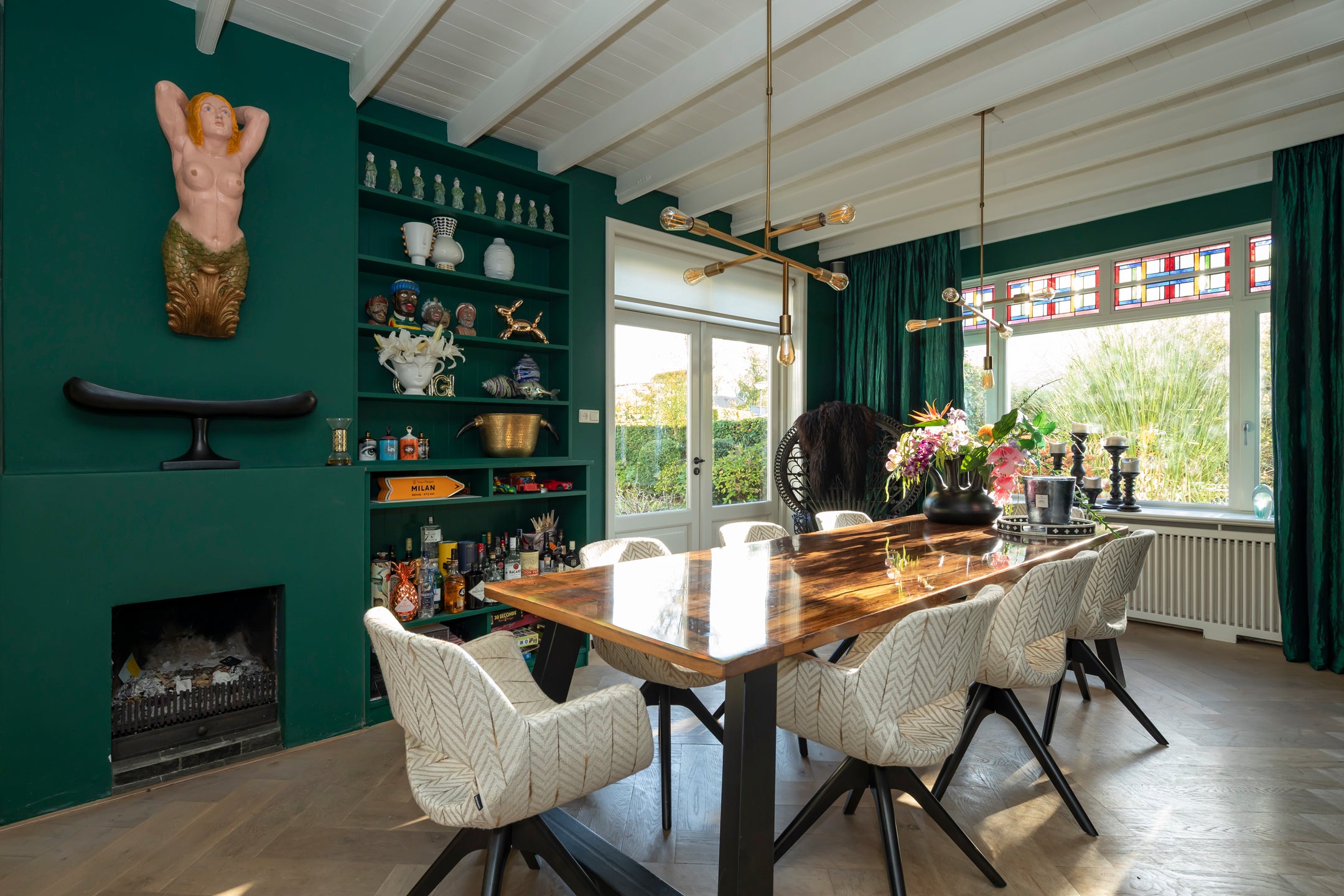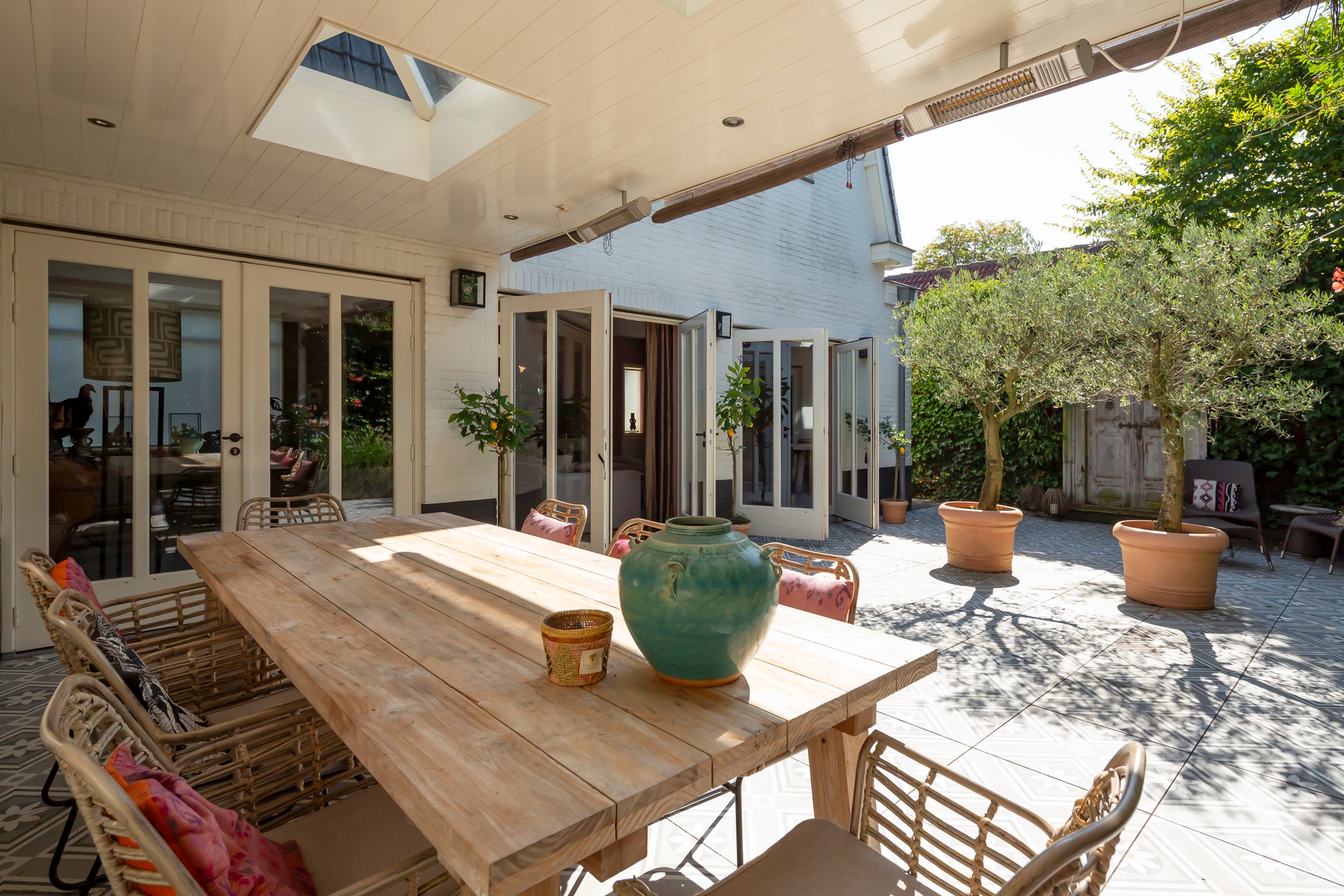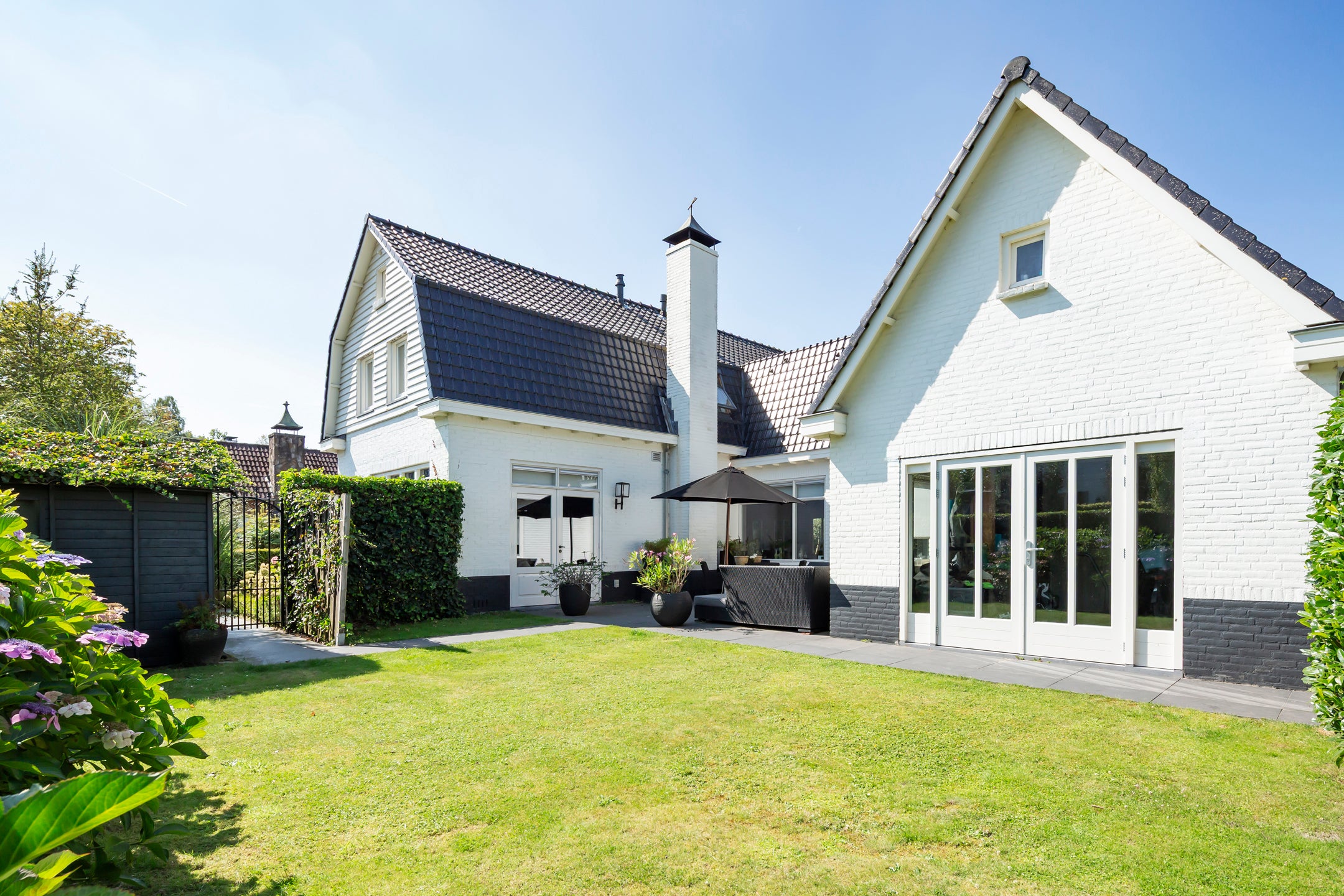 De sfeervolle woonkamer heeft openslaande deuren naar de patiotuin, terwijl de eetkamer met gashaard aansluit via prachtige en suite deuren. De multifunctionele speel- of werkkamer aan de voorkant kijkt uit op de tuin. De keuken is luxe en uitnodigend, perfect voor gezellige avonden.