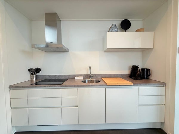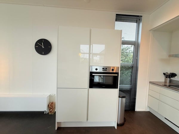 De luxe en moderne keuken is uitgevoerd in hoogglans wit en slim opgesteld, waardoor er extra leefruimte ontstaat in de woonkamer. De keuken is van alle gemakken voorzien en beschikt over een vaatwasser, inductiekookplaat, afzuigkap, magnetron, oven, koelkast, vriezer, spoelbak met kraan, koffiezetapparaat, waterkoker en veel kastruimte. De aparte kastenwand met koelkast vormt een stijlvol en praktisch onderdeel van het geheel en maakt de keuken tot het culinaire middelpunt van de woning.