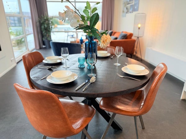 Het open eetgedeelte sluit naadloos aan op de woonkamer en biedt een fijne plek om samen te komen voor lange diners, rustige ochtenden of gezellige avonden. De open indeling versterkt het gevoel van ruimte en maakt deze leefruimte tot een prettig geheel.