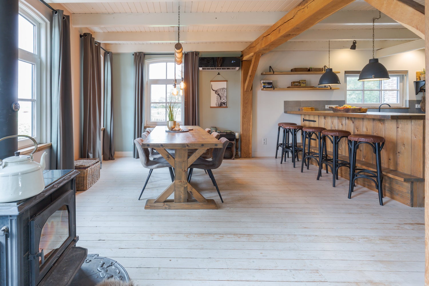 Bij Hoofdweg 31 in Oldelamer vindt u een charmante vrijstaande woonboerderij uit 1927, gelegen op een perceel van 2.550 m². Met een woonoppervlakte van 271 m² biedt deze boerderij ruimte voor alles wat u nodig heeft. De woning is verrassend licht, met zichtbare houten balken en een sfeervolle leefkeuken, compleet met robuust fornuis en een comfortabele woonkamer met houtkachel. Alles, inclusief 4 slaapkamers en een moderne badkamer, bevindt zich op de begane grond. Daarnaast zijn er praktische ruimtes zoals een kantoor en een bar of mancave. Buiten vindt u een verzorgde tuin, een zand paardenbak en stallen voor uw dieren. Met een grote oprit en ruimte voor meerdere auto’s is dit de ideale plek voor rust en ruimte.