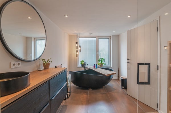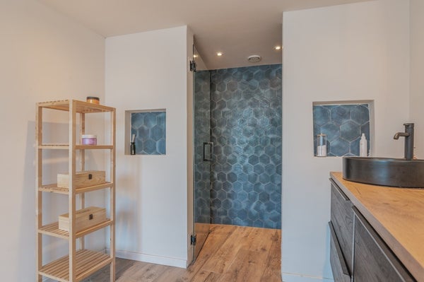 - De woning is voorzien van een luxe badkamer met een dubbele douche op de begane grond;