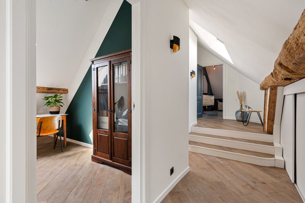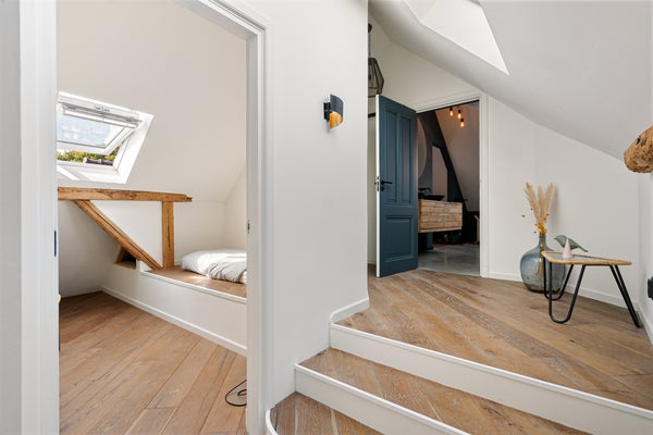 Op de vide bevindt zich een fantastische thuiswerkplek. Door de lichtstraat in het dakvlak alhier, meer dan voldoende daglichtoetreding en betrokkenheid bij de omgeving. Voorts 3 slaapkamers waarvan de grootste (masterbedroom) ook rechtstreeks toegang heeft tot de badkamer. De badkamer (2020) is voorzien van stijlvol sanitair en keramiek en is bijzonder fraai afgewerkt en voorzien van een riante inloopdouche, een ligbad, een derde toilet, en een badkamermeubel met keramische waskommen. Een groot Velux kantelraam biedt hier daglicht en ventilatie.