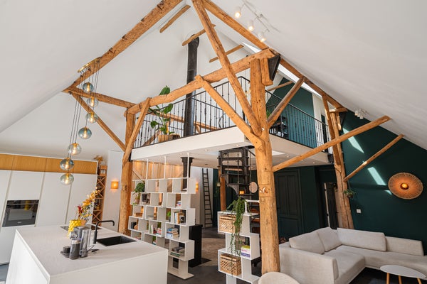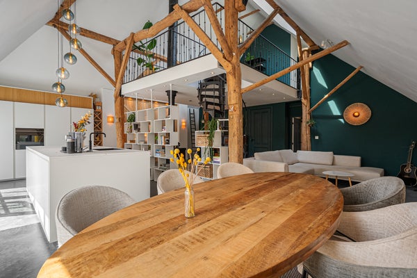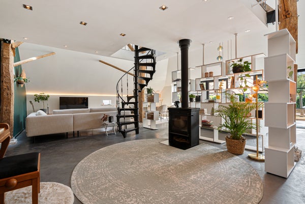 Een fraaie spiltrap biedt toegang tot de verdieping.