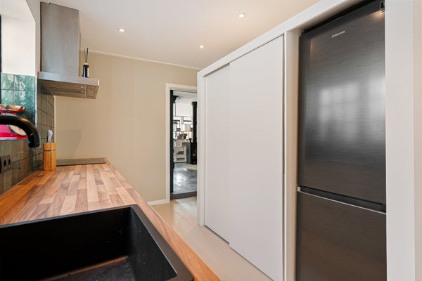 De stijlvolle keukenopstelling (2023) heeft een spoel-/kookeiland met veel kast en werkbladruimte. Uiteraard een Quooker, een vaatwasser, een downdraft inductiekookplaat, een combi-oven en separate koelkast en vrieskast. De living heeft een houtkachel, vloerverwarming en in de naastgelegen bijkeuken bevindt zich de stookruimte en de wasgelegenheid.