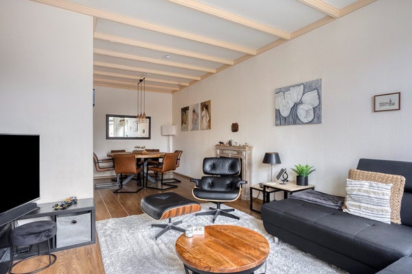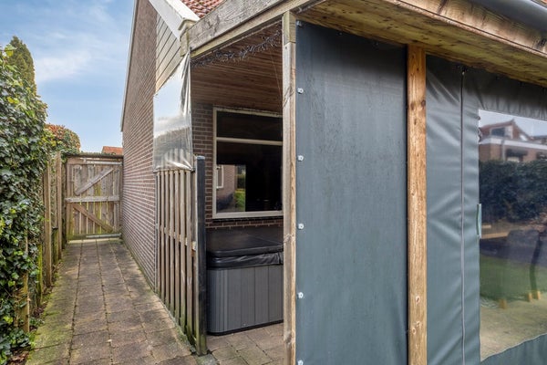- De woning beschikt over een achtertuin met o.a. een overdekt terras, een achterom en een garage met zolder.