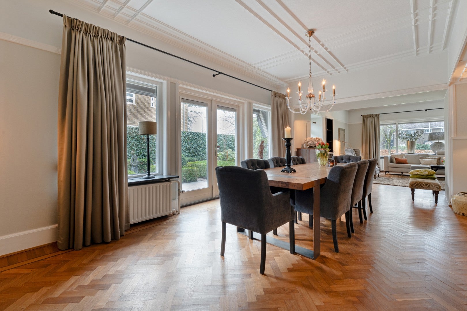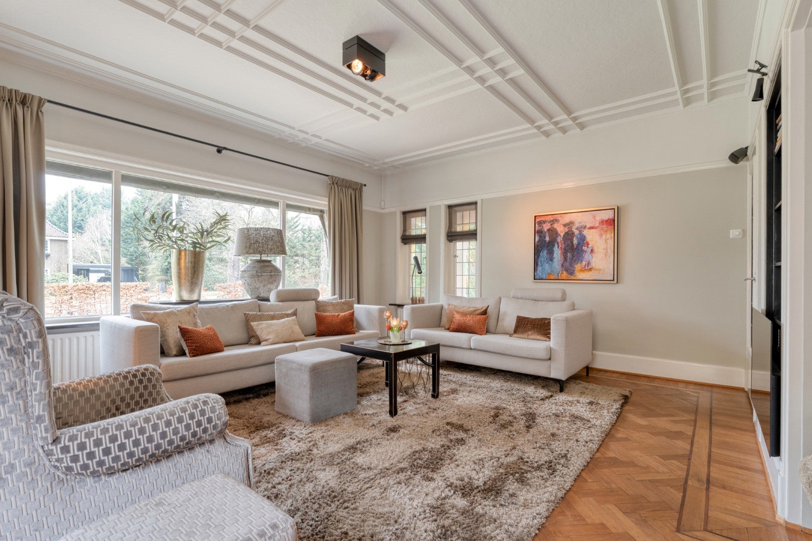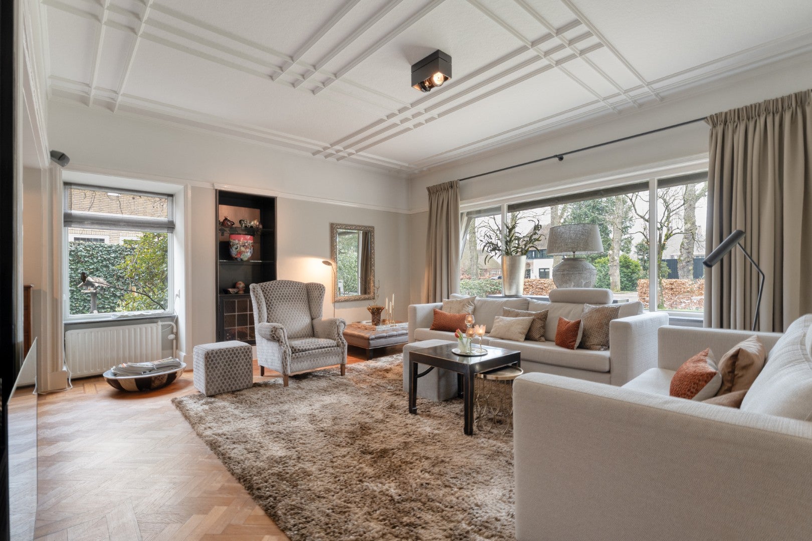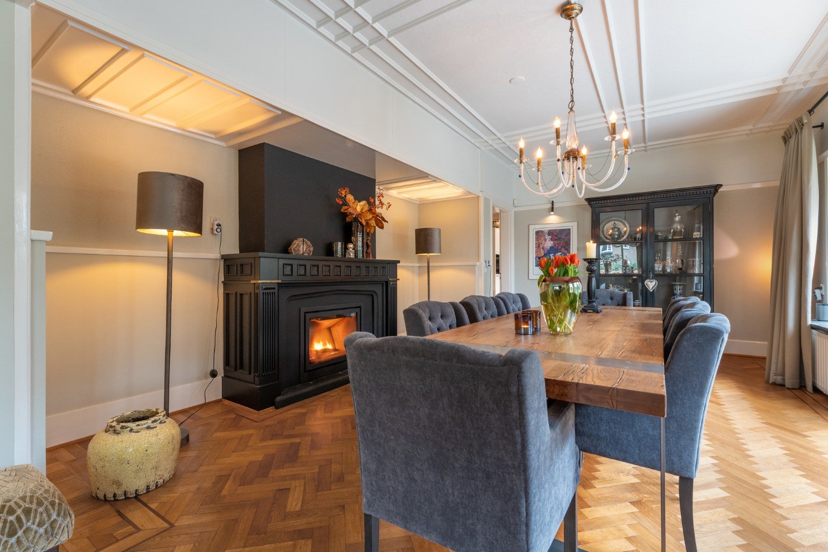 Deze indrukwekkende jaren ’30 villa, gebouwd in 1936, biedt een royale woonruimte van 410 m² en bevindt zich op een perceel van bijna 2.000 m². Gelegen aan de zuidzijde van Ommen, ben je dichtbij het centrum, het NS-station en uitgestrekte bossen. De villa heeft veel originele stijlkenmerken behouden, waaronder fraaie glas-in-loodramen en een bordestrap. De ruime kelder, de grote woonkamer met eetkamer en de sfeervolle eetkeuken creëren een comfortabele sfeer. Op de eerste verdieping zijn vier slaapkamers en twee badkamers. De tweede verdieping biedt extra mogelijkheden. De diepe, privacyvolle achtertuin is ideaal voor ontspanning. Bij de villa hoort ook een rieten bijgebouw met garage. Met de benodigde voorzieningen en goede isolatie is dit een perfect thuis voor gezinnen.