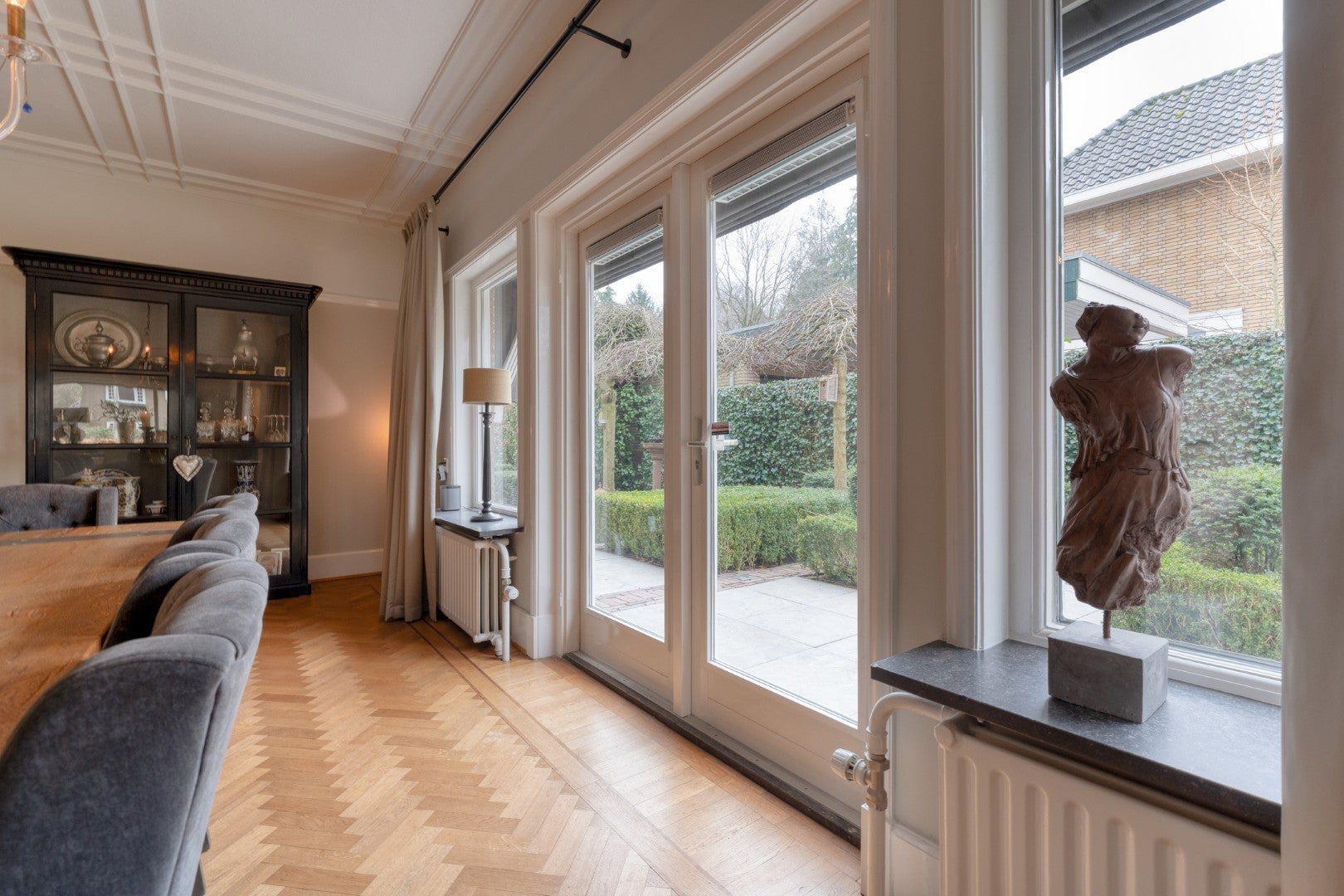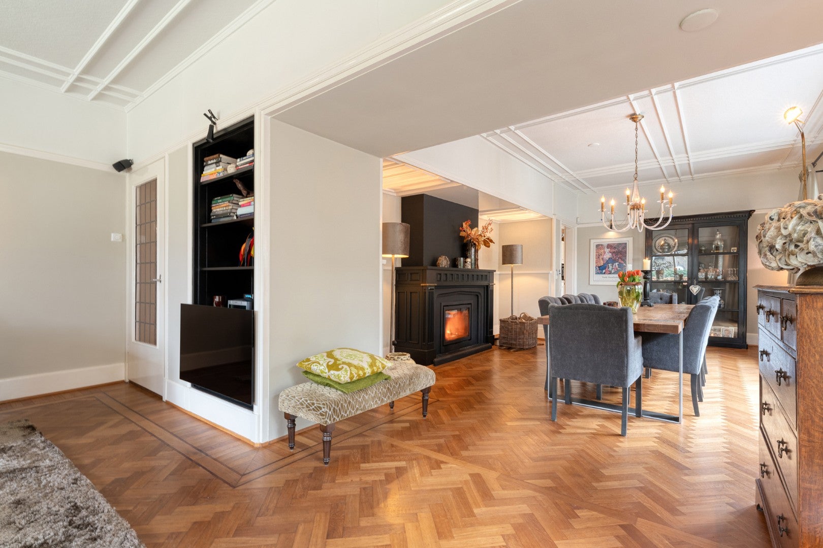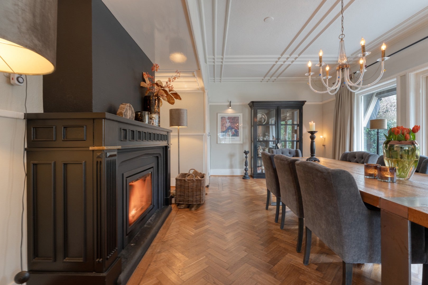 Deze indrukwekkende jaren ’30 villa, gebouwd in 1936, biedt een royale woonruimte van 410 m² en bevindt zich op een perceel van bijna 2.000 m². Gelegen aan de zuidzijde van Ommen, ben je dichtbij het centrum, het NS-station en uitgestrekte bossen. De villa heeft veel originele stijlkenmerken behouden, waaronder fraaie glas-in-loodramen en een bordestrap. De ruime kelder, de grote woonkamer met eetkamer en de sfeervolle eetkeuken creëren een comfortabele sfeer. Op de eerste verdieping zijn vier slaapkamers en twee badkamers. De tweede verdieping biedt extra mogelijkheden. De diepe, privacyvolle achtertuin is ideaal voor ontspanning. Bij de villa hoort ook een rieten bijgebouw met garage. Met de benodigde voorzieningen en goede isolatie is dit een perfect thuis voor gezinnen.