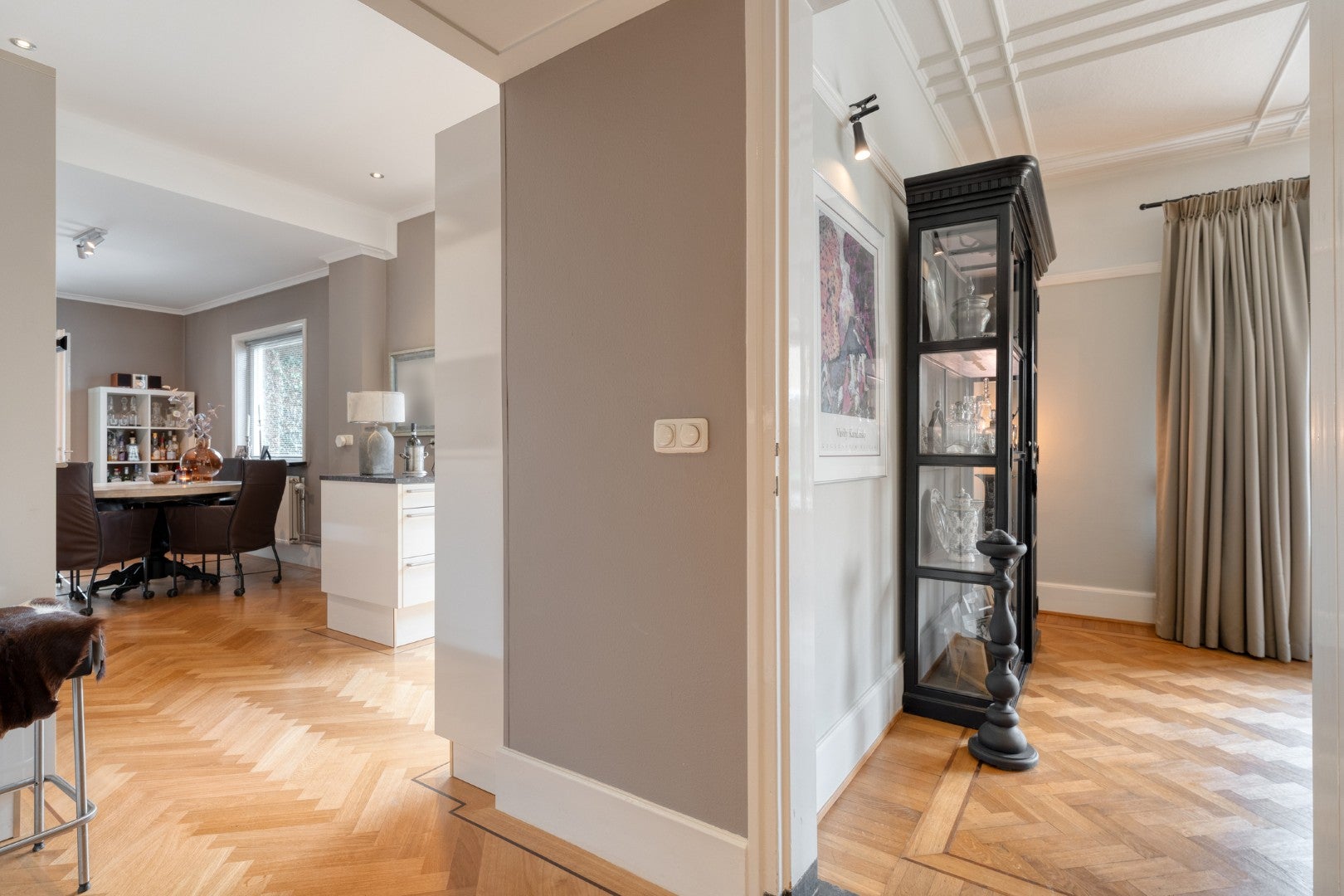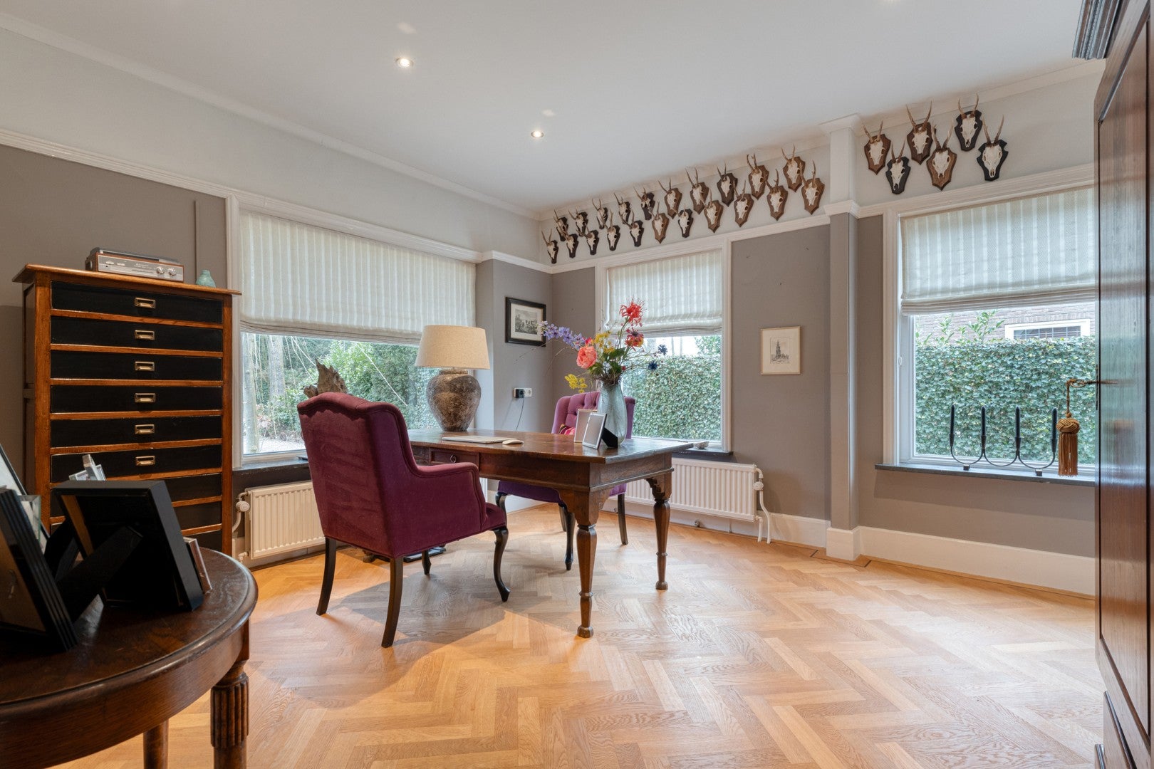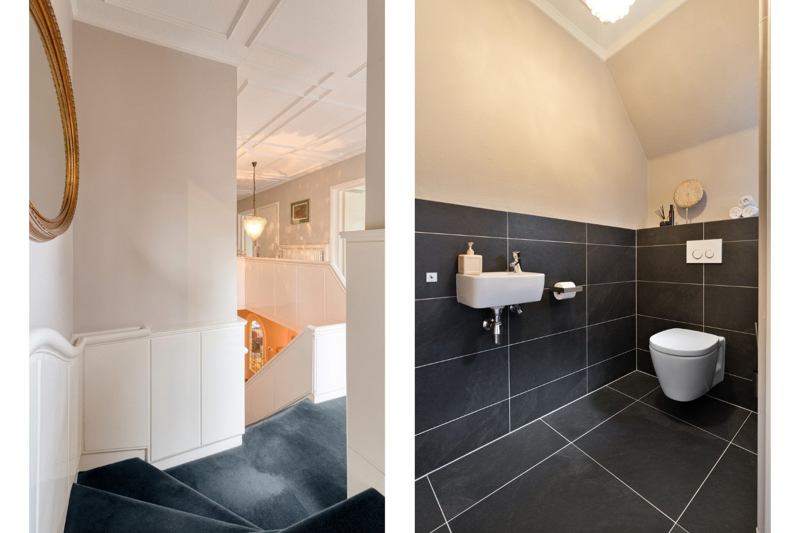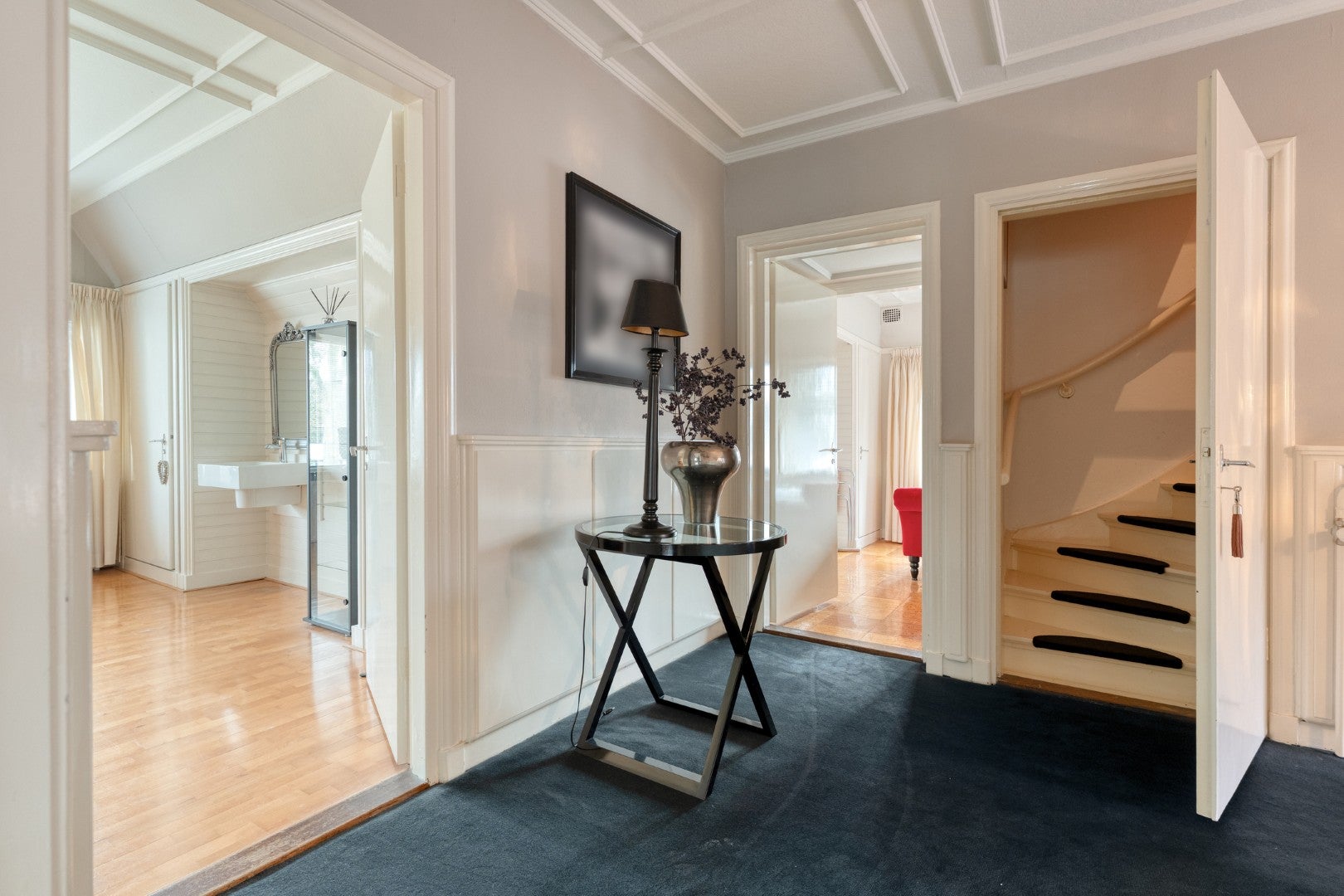 Deze indrukwekkende jaren ’30 villa, gebouwd in 1936, biedt een royale woonruimte van 410 m² en bevindt zich op een perceel van bijna 2.000 m². Gelegen aan de zuidzijde van Ommen, ben je dichtbij het centrum, het NS-station en uitgestrekte bossen. De villa heeft veel originele stijlkenmerken behouden, waaronder fraaie glas-in-loodramen en een bordestrap. De ruime kelder, de grote woonkamer met eetkamer en de sfeervolle eetkeuken creëren een comfortabele sfeer. Op de eerste verdieping zijn vier slaapkamers en twee badkamers. De tweede verdieping biedt extra mogelijkheden. De diepe, privacyvolle achtertuin is ideaal voor ontspanning. Bij de villa hoort ook een rieten bijgebouw met garage. Met de benodigde voorzieningen en goede isolatie is dit een perfect thuis voor gezinnen.