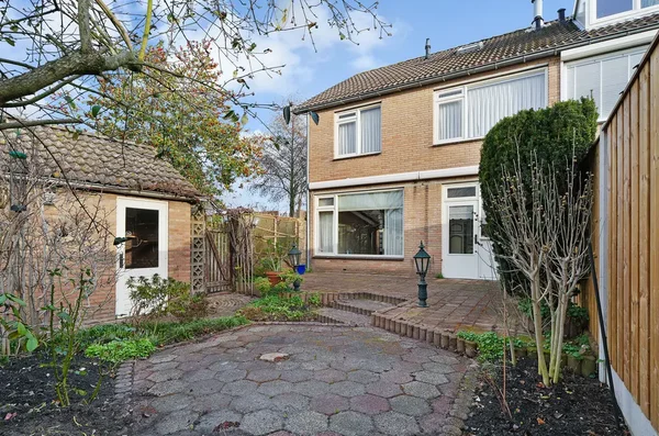 Deze ruime en goed onderhouden tweekapper is gelegen aan een rustig, groen hofje op loopafstand van het NS-station, sportverenigingen en winkels. Met een woonoppervlakte van 123 m² biedt de woning vier slaapkamers en de mogelijkheid voor extra kamers op de tweede verdieping. De indeling omvat een hal, een toilet, een woonkamer met open haard en een open keuken met tuindeur. De eerste verdieping heeft een ruime overloop, vier slaapkamers en een nette badkamer. De tweede verdieping herbergt een open zolderkamer met mogelijkheden. De onderhoudsvriendelijke achtertuin heeft een achterom en een vrijstaande stenen garage met elektra. De woning is van 1978 en gedeeltelijk voorzien van dubbel glas. Het perceeloppervlak is 247 m².