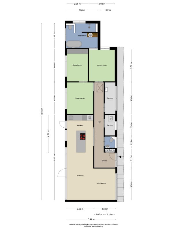 - De tussenwoning heeft een woonoppervlakte van 102 m² en beschikt over 4 kamers, waarvan 3 slaapkamers;