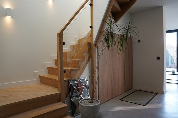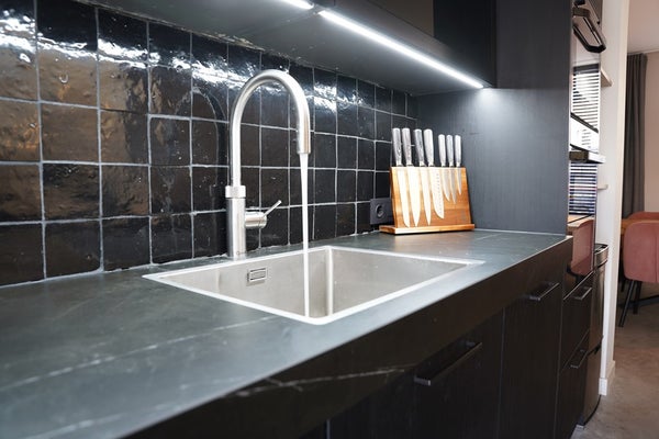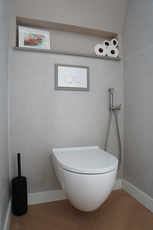 Strak stucwerk en moderne vloeren maken het geheel compleet.