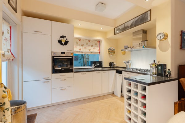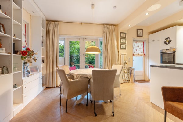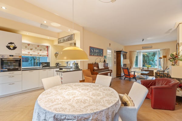 In een groene omgeving nabij de bossen van Landgoed Mariëndaal en de Lichtenbeek ligt dit charmante, vrijstaande woonhuis, gebouwd rond 1932. Met een gebruiksoppervlakte van circa 134 m2 heeft de woning een prettige, beschutte achtertuin (noord) met berging en achterom. De indeling omvat op de begane grond een hal met toilet, een woonkamer van circa 32 m2 met erker, open haard en openslaande deuren, en een open keuken. De kelder biedt provisieruimte. Op de eerste verdieping zijn er twee slaapkamers (circa 16 m2 en 13 m2), een kleine slaapkamer/cast kamer (circa 5 m2), en een moderne badkamer. De tweede verdieping heeft een slaapkamer (circa 11 m2) en zolderruimte. De woning ligt aan de rand van Oosterbeek met een snelle verbinding naar het centrum en Arnhem.