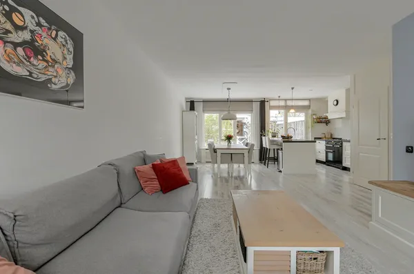 • De tussenwoning heeft een woonoppervlakte van 110 m² en beschikt over 3 kamers, waarvan 2 slaapkamers;