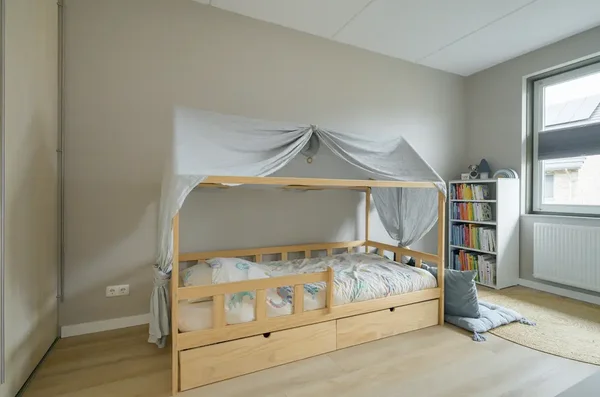 Op de eerste verdieping bevinden zich de slaapkamers en een luxe badkamer met zowel een ligbad als inloopdouche. De tweede verdieping biedt extra slaapkamers en een tweede badkamer. Met uitstekende isolatie, zonnepanelen en een rustige ligging nabij voorzieningen, is dit huis zeker de moeite waard om te bezichtigen.